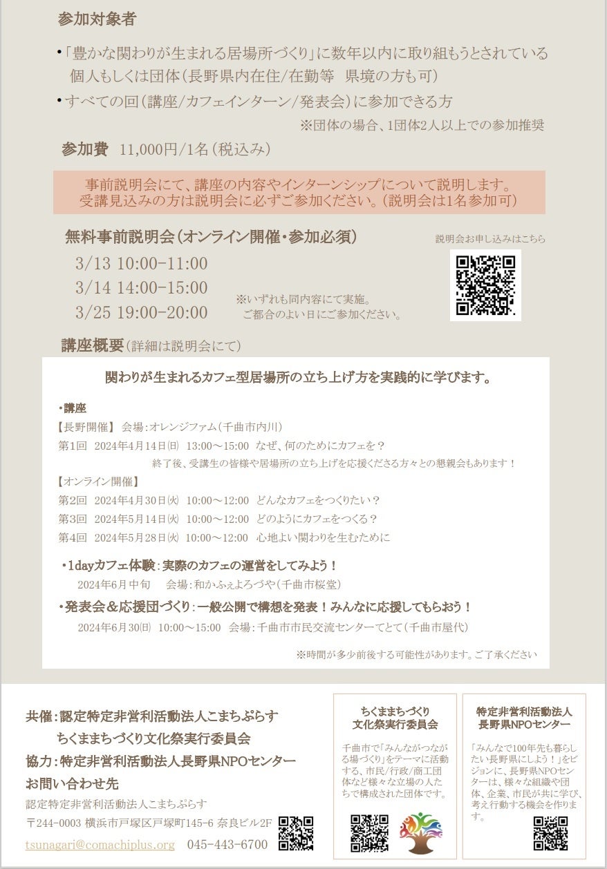 共催:認定特定非営利活動法人こまちぷらす・ちくままちづくり文化祭実行委員会