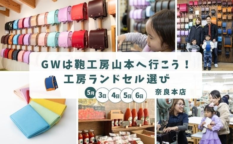 職人がつくる本革ランドセルを直接手に取って選べる鞄工房山本 奈良本店では、2025年5月3日(土・祝)〜6日(火・祝)の4日間、GW限定イベントを開催します。