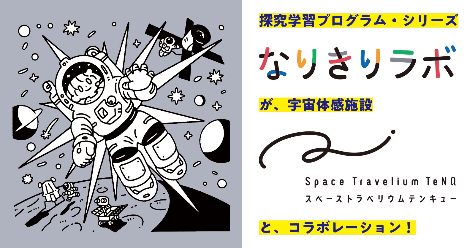 探究学習を推進する株式会社a.school(東京都文京区、代表取締役 岩田拓真、以下エイスクール)は、2024年11月22日に東京ドームシティ6Fにオープンする新しい宇宙体感施設『Space Travelium TeNQ(スペーストラベリウムテンキュー)』で実施される「宇宙飛行士」探究学習プログラムを、株式会社東京ドーム(東京都文京区、代表取締役社長 COO 長岡 勤、以下東京ドーム)とともに共同開発しました。本プログラムは、エイスクールが博物館・科学館を舞台にサイエンスの面白さや奥深さを伝えるための探究・創造的な学びを提供する取り組みの一環として、小学生向けの探究学習プログラム・シリーズ「なりきりラボ®」(2019年度グッドデザイン賞受賞)の特別編として開発されました。博物館・科学館等で一般的に行われている単発プログラムとは異なり、全8コマ(各90分)にわたり時間をかけて探究する構成となっていること、宇宙に関する新たな知識を学ぶだけで終わらず、宇宙飛行士や宇宙開発のプロフェッショナルになりきりながら自分の考えをアウトプットして学ぶ形式であることの2点が、このプログラムの画期的な特徴です。
