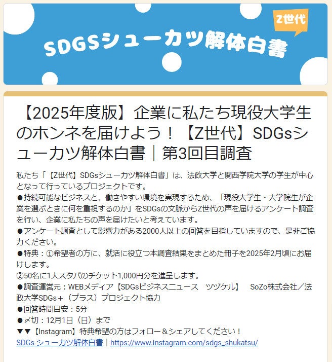 2025年版の「【Z世代】SDGsシューカツ解体白書」プロジェクトが本格始動しました。