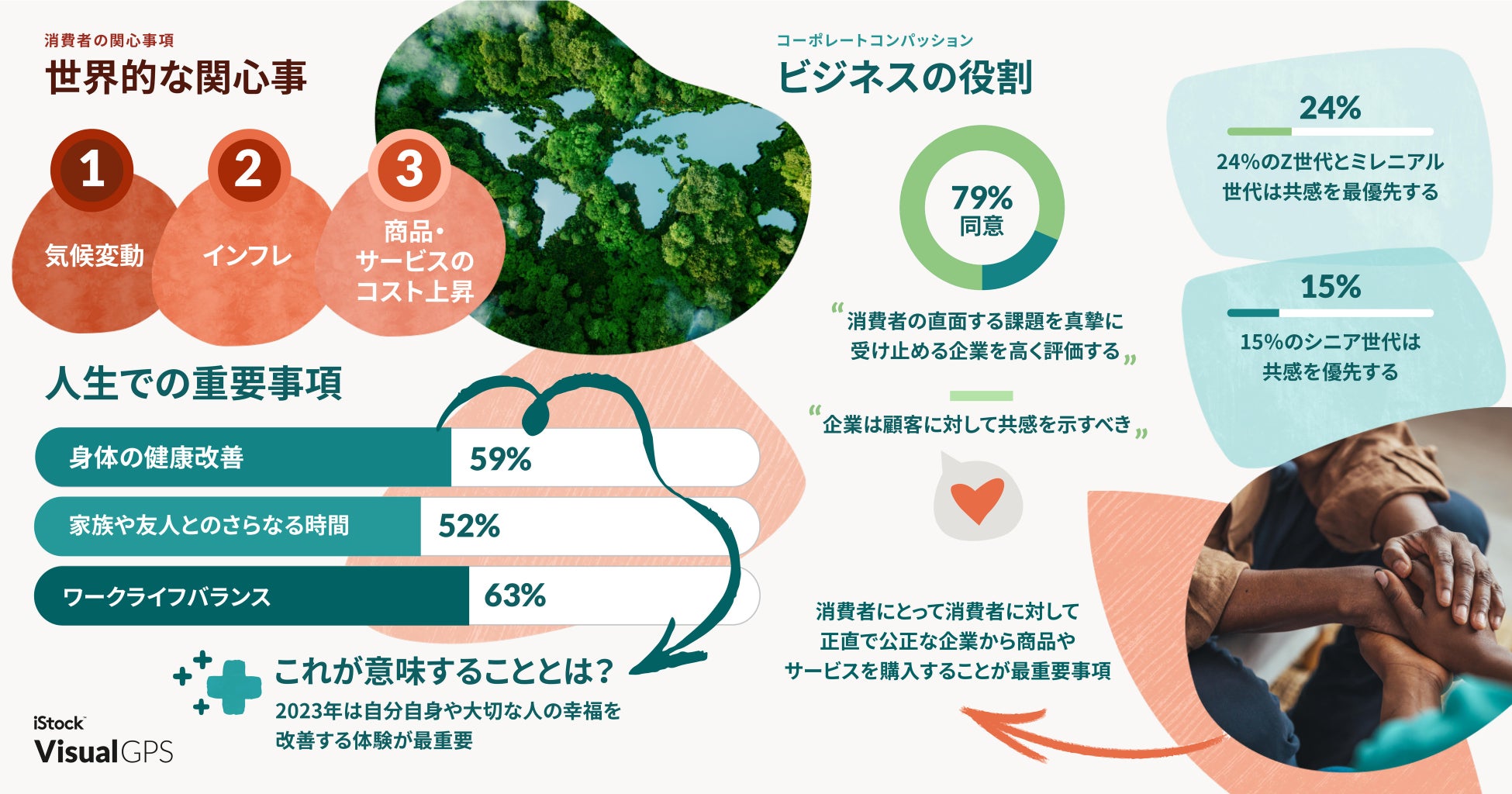 プレミアム画像や動画を手頃な価格で提供する世界最大級のストックフォトサイトiStockは、現在の経済の見通しにおいて、消費者心理を中小企業が理解するために、同社のクリエイティブインサイトプラットフォームVisualGPSによる調査レポートを発表し、2023年の企業のマーケティング戦略の指針となる情報を提供します。