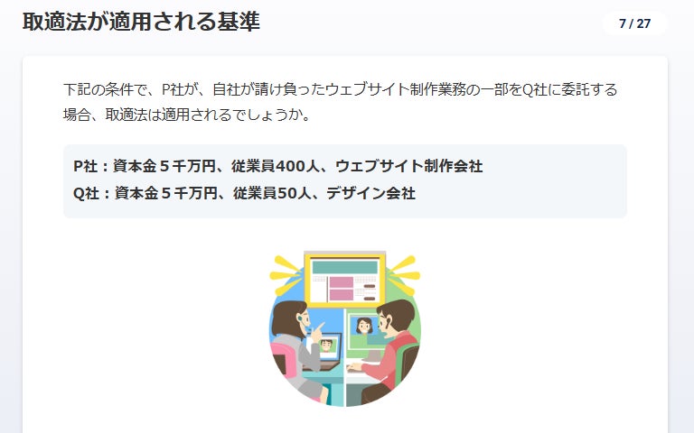 下請法改正による取適法施行に合わせて、最新の内容を最速のタイミングで体系的に学べる企業向けeラーニング教材です