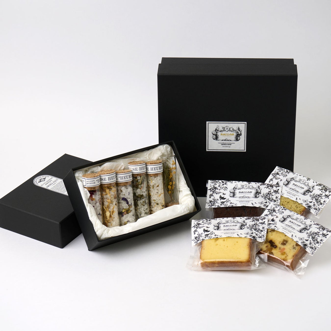 セット内容:アロマバスソルトギフトセット、カットパウンドケーキ(4種)