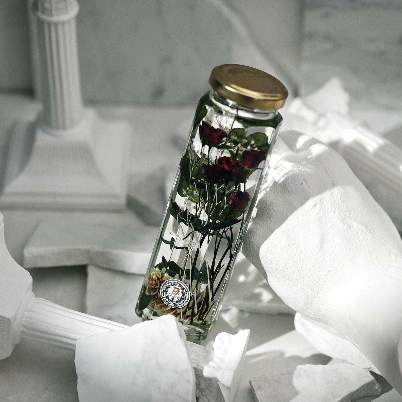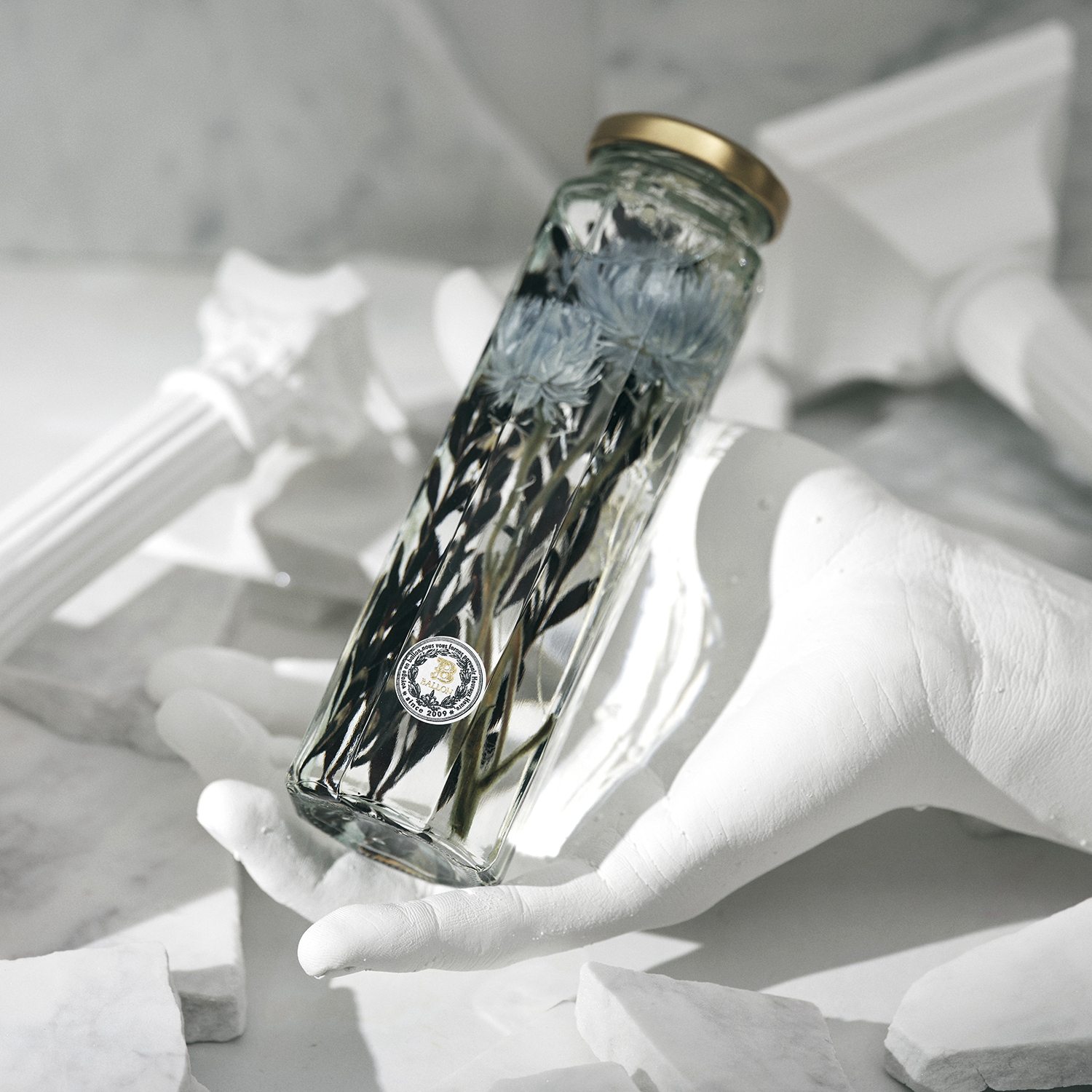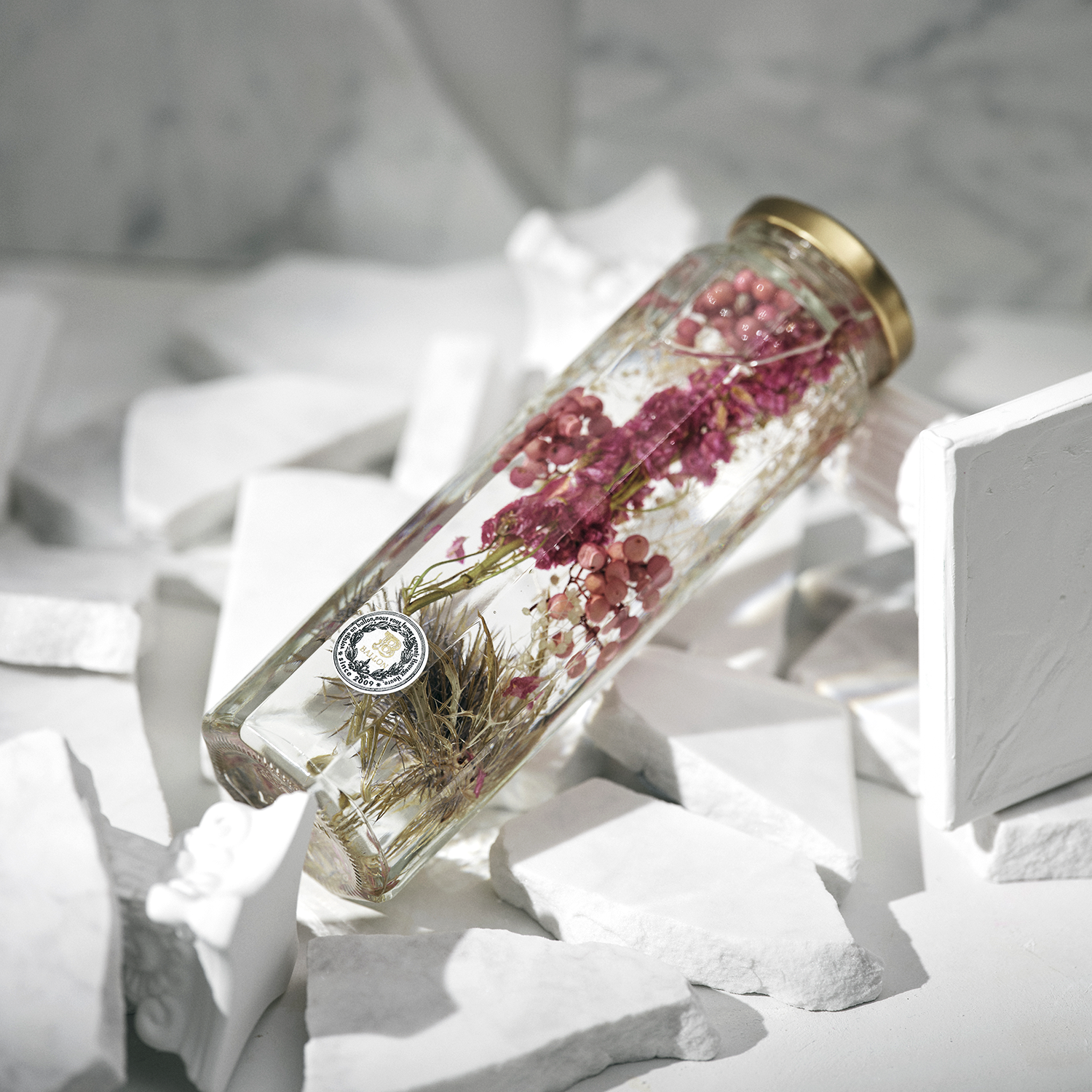 花の一瞬の美しさを標本のように留めた水中花、ハーバリウム。