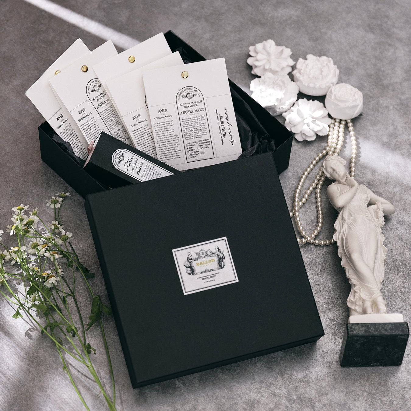 セット内容:バスソルト トラベルパック5種、ハンド美容液クリーム(ダマスクローズ)