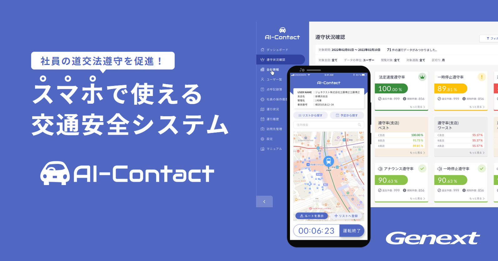 事故原因である道交法違反に着目し、運行管理アプリ「AI-Contact」を開発