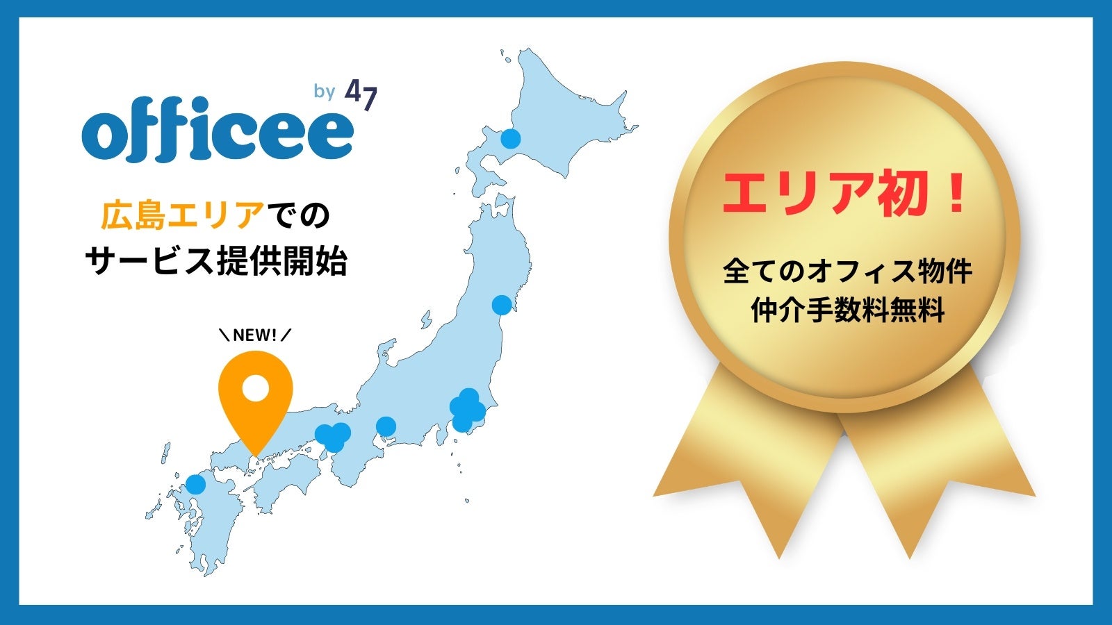 働く場所や環境など“ワークプレイス”の質の向上に取り組む47ホールディングス株式会社(本社:東京都渋谷区/代表取締役:阿久根 聡)傘下で、仲介手数料無料の賃貸オフィス情報サイト「officee(オフィシー)」(https://officee.jp/)を運営する47株式会社(同上)は、2023年3月より、広島県広島市でのサービス提供を開始しました。全物件仲介手数料無料のサービスは同エリア初となります。(※1)