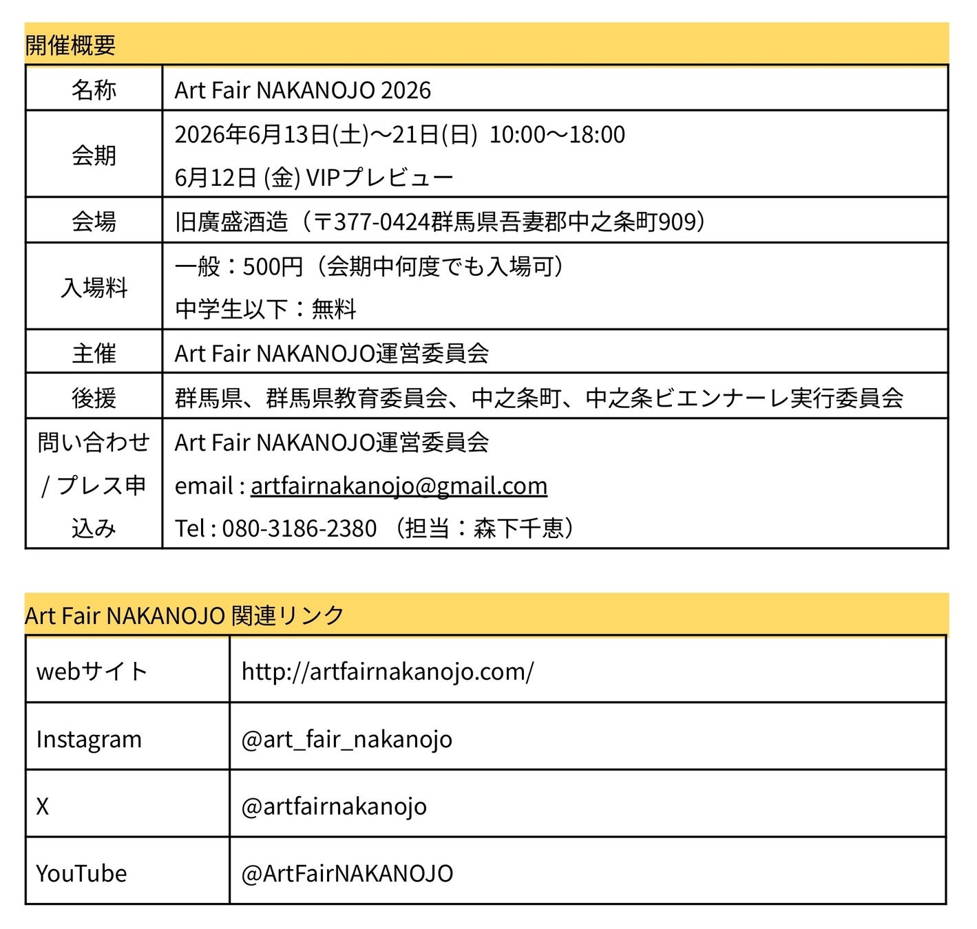 Art Fair NAKANOJO 担当:森下 Mail: artfairnakanojo@gmail.com