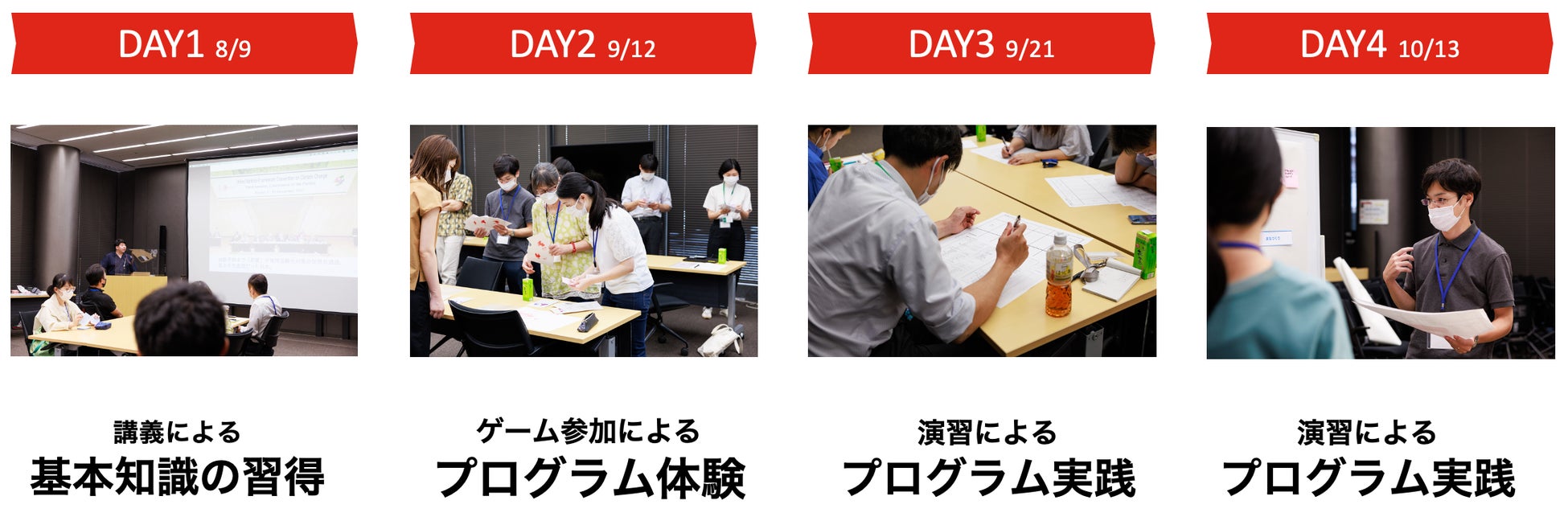 群馬県内での養成講座では、全4回(各回3時間)に分けて、各種コンテンツの体験・演習を行い、ファシリテーターとしての養成に取り組みました。