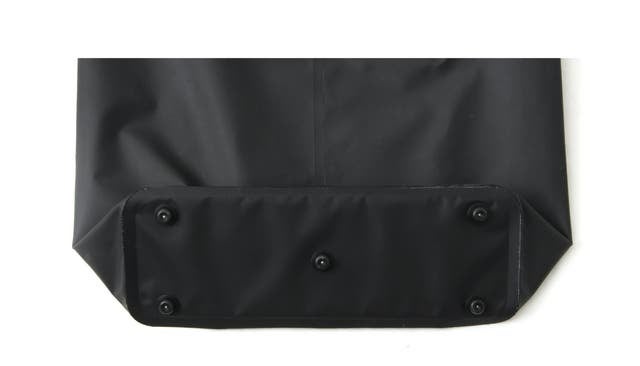バッグ表裏にはpvcコーティングを施した耐水素材を使用。それらを圧着させることで縫い目をなくし、嵐にも耐える耐水性を実現しました!