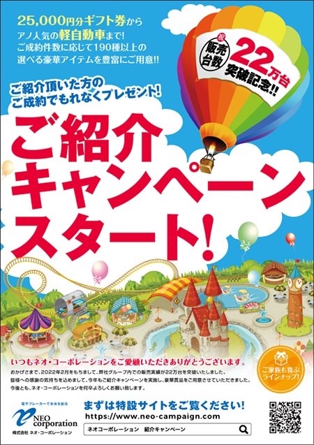 電子ブレーカーのネオ・コーポレーションが、累積販売台数22万台突破!感謝の気持ちを込めて、プレゼントキャンペーンを開催!