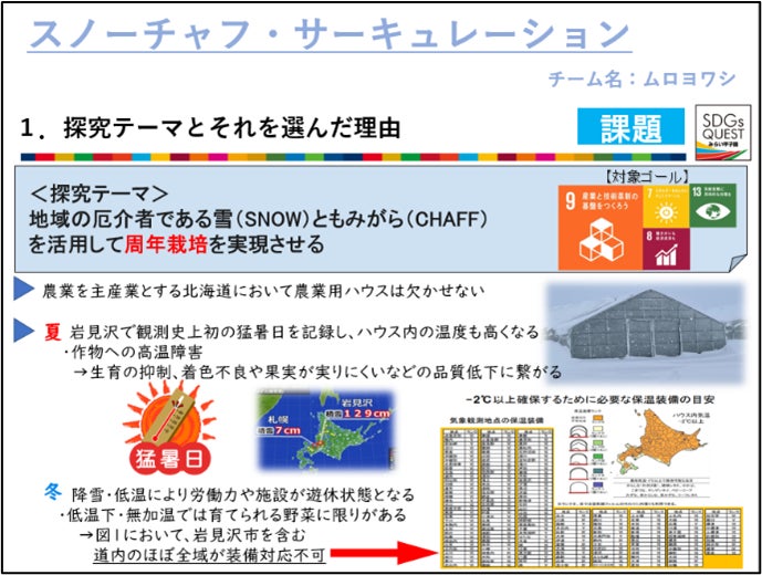 SDGs目標9を起点とした豪雪地帯の雪と籾殻を活用したゼロカーボン農業生産地域を目指すプラン。