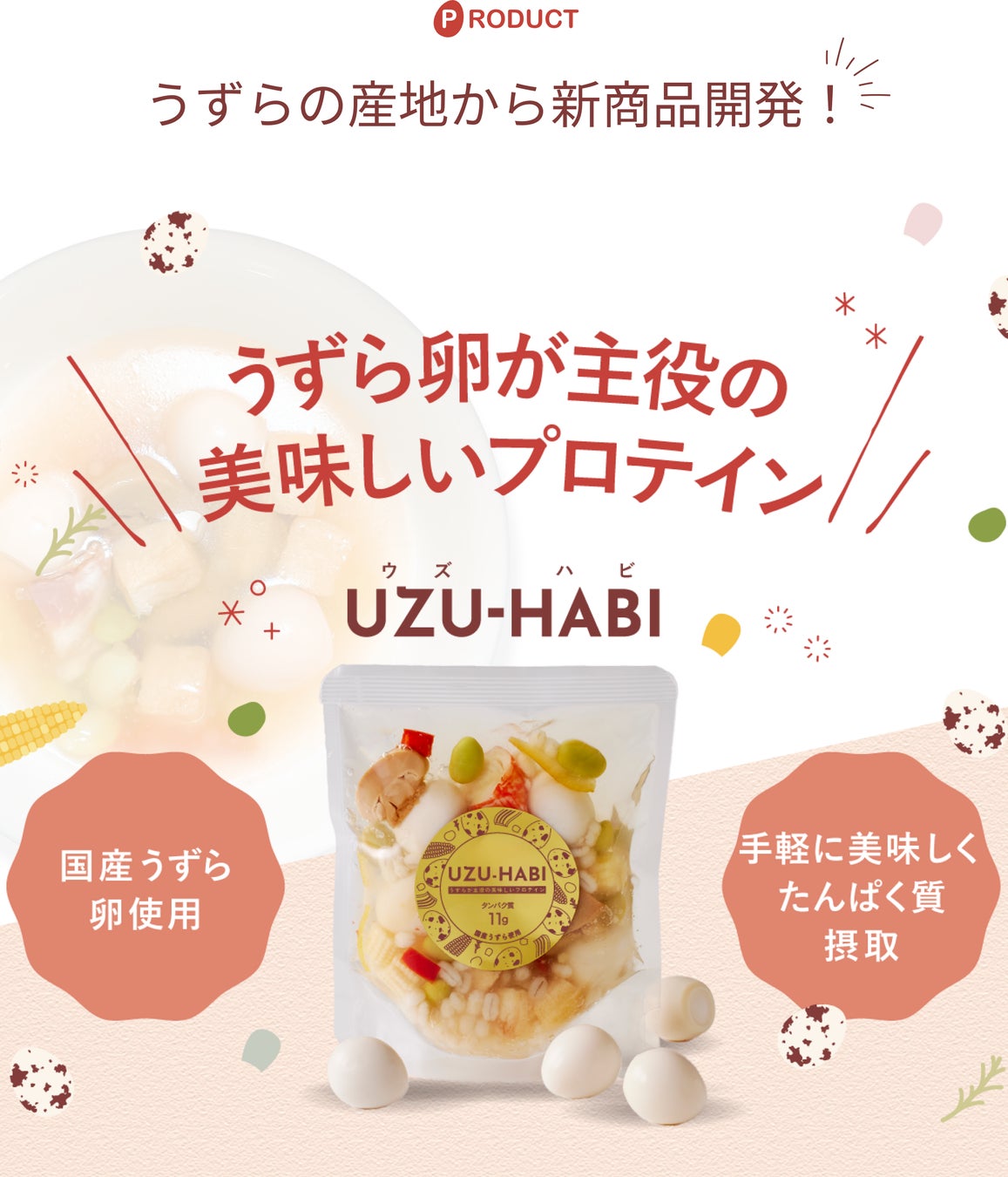 国産うずら卵の苦境を乗り越えるため、産地の企業が新商品「うずら卵が主役の美味しいプロテイン"UZU-HABI"」を開発!