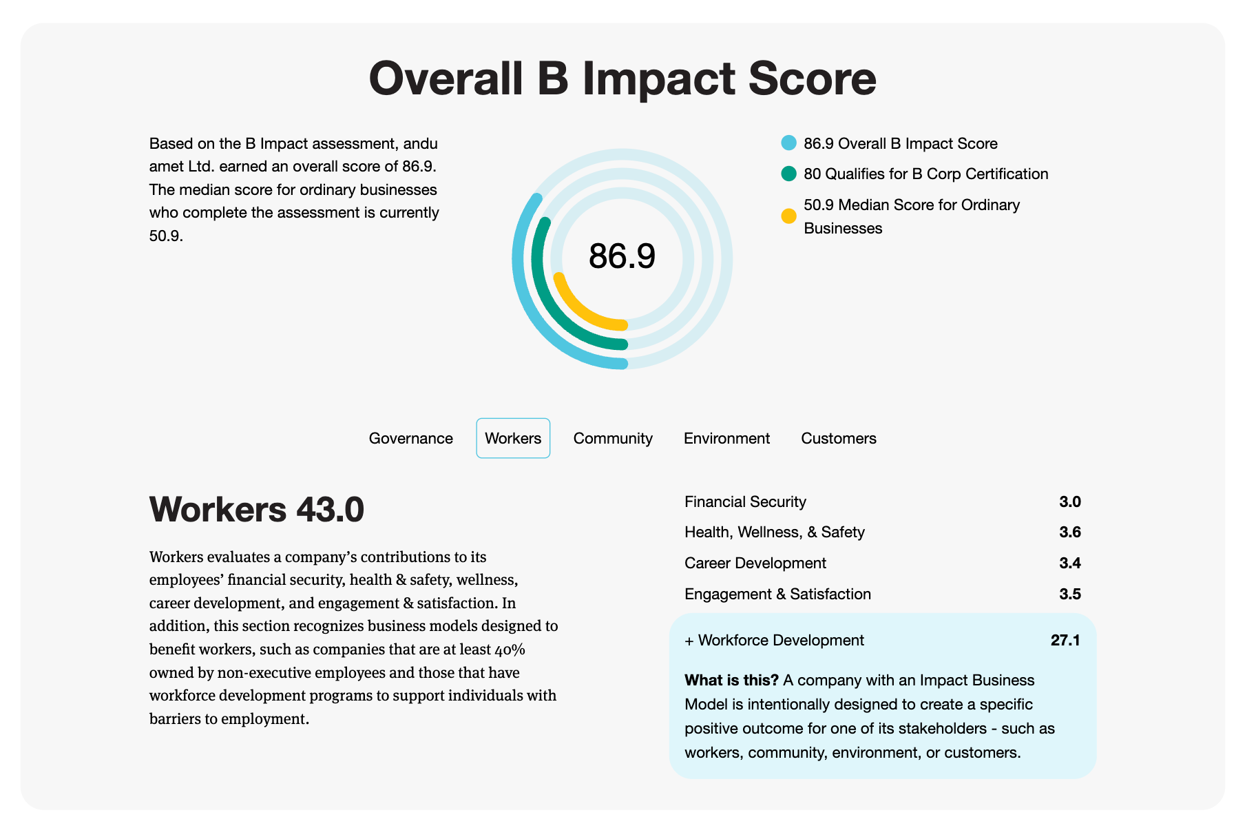 図1 非営利団体B Lab(ビーラボ)HPに掲載されたandu amet の スコア