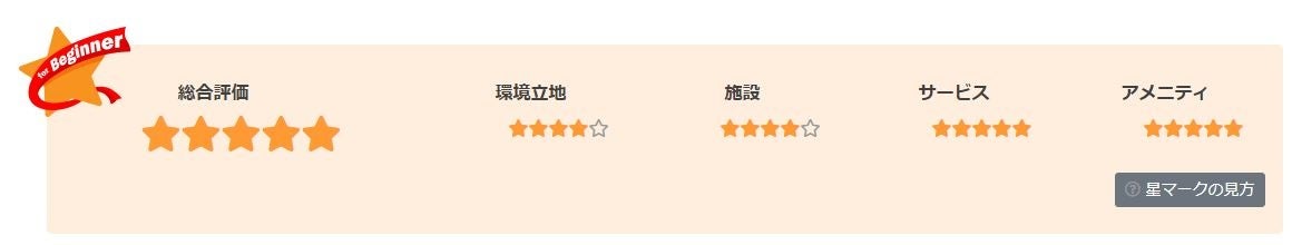 現在は「総合評価」の他「立地」「施設」「サービス」「アメニティー(快適性)」に分けて5段階で評価し、星マークの数で表している。特にキャンプ初心者の人が安心して楽しめるキャンプ場を評価している。