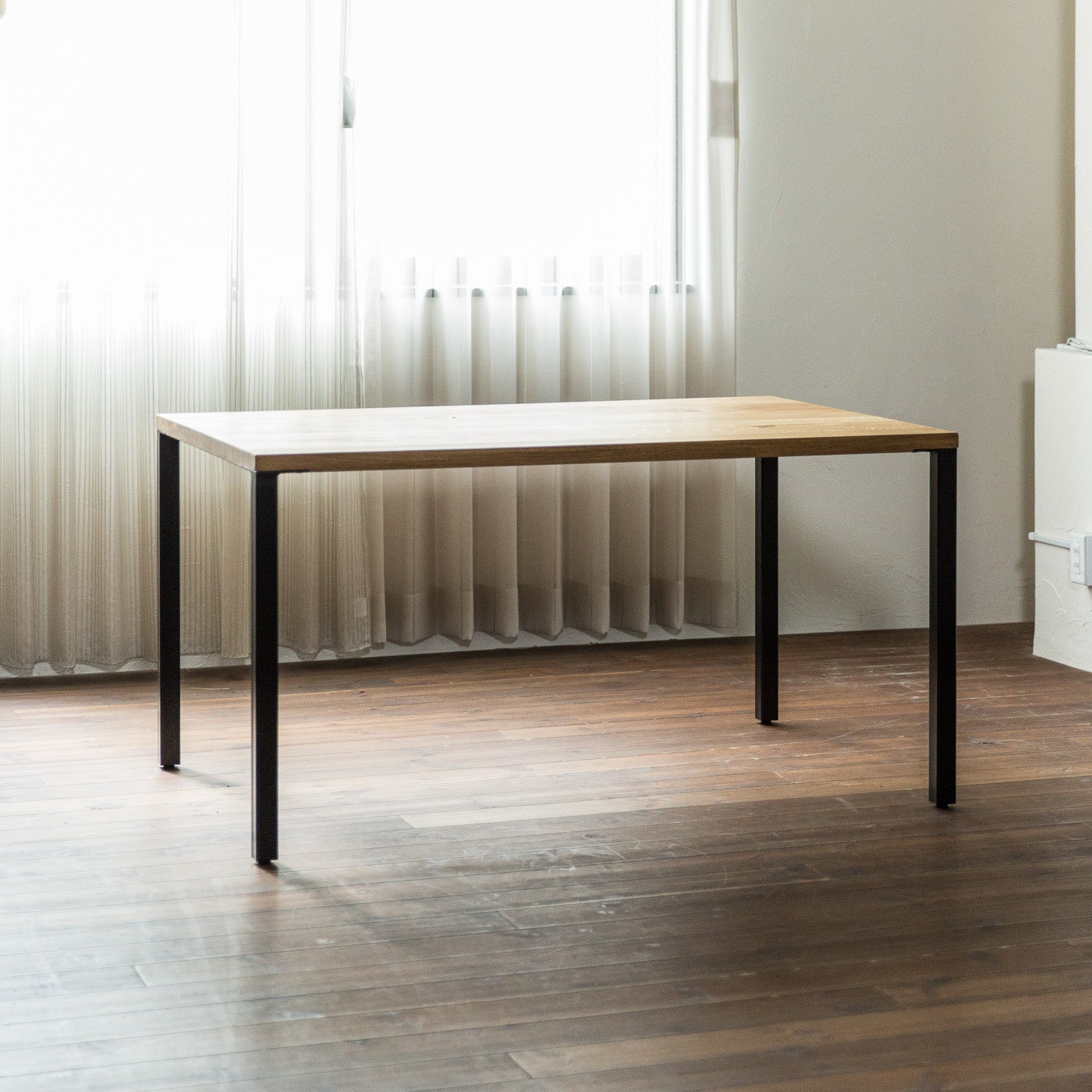 節ありの天然木ナラ材とスチール脚を組み合わせたダイニングテーブル。節とはそこに枝が生えていた証であり、天然木を使用している証でもある。節を指で触れた時、凸凹や木肌を撫でながら木の質感を感じることができる。そんな天然木の中でも貴重な35mm厚の無垢天板を使用した本商品。スチールの脚と組み合わせることで、インダストリアル、カフェのような雰囲気のテーブルに。