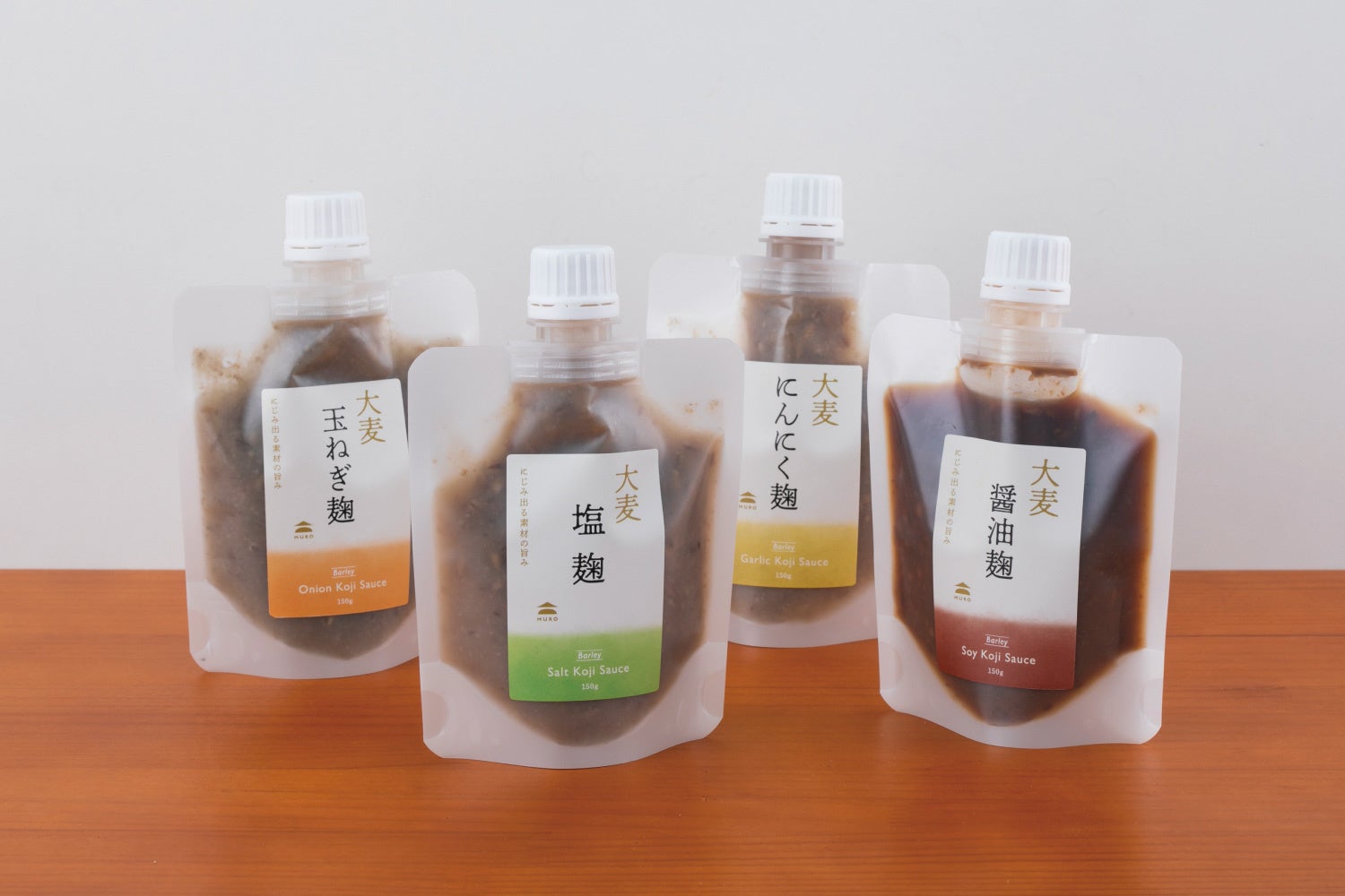 この度、家庭でも手軽に美味しく調理ができるようにと、大麦麹に塩、醤油、玉葱やにんにくを加えた味のバリエーションを4種類ご用意しました。
