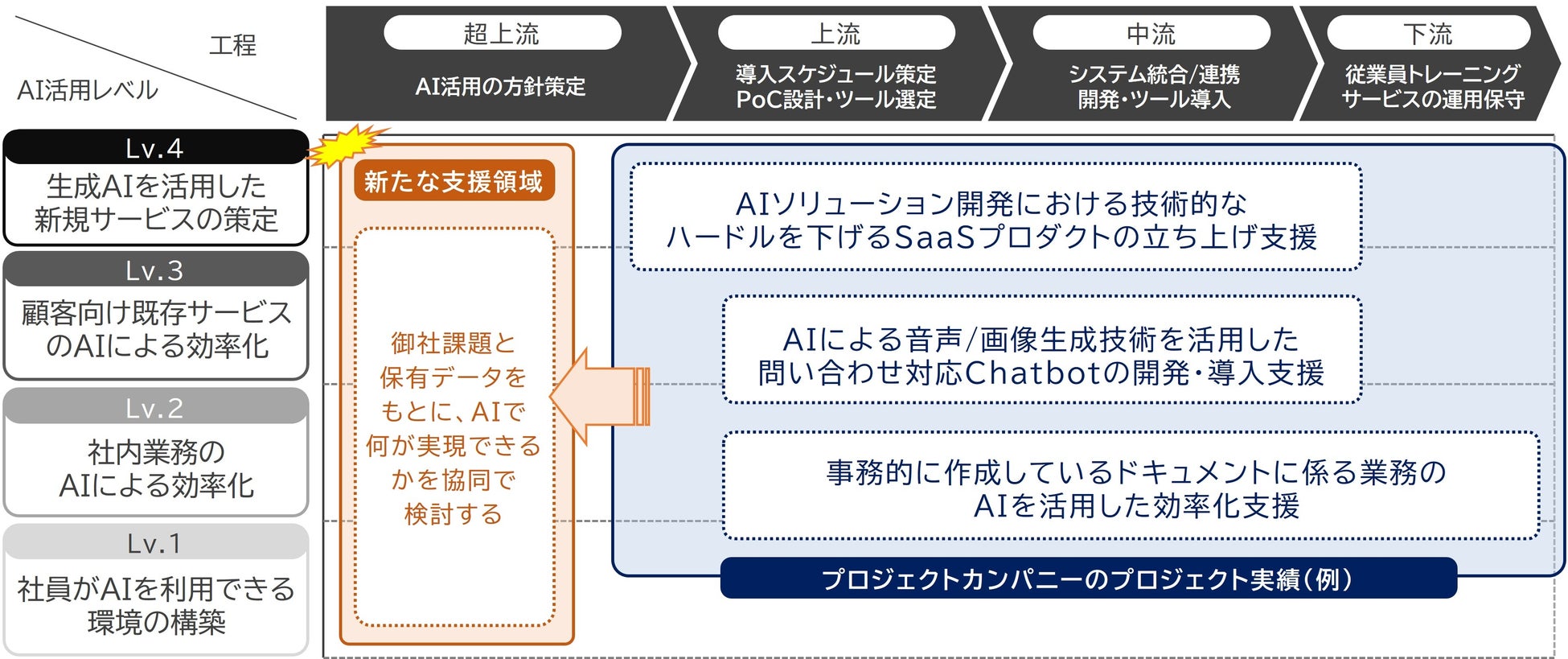 プロジェクトカンパニーは、ビジネスにおけるAI活用の支援を開始するとともに引き続きDX領域で支援メニューを拡充し、日本企業の成長に貢献してまいります。