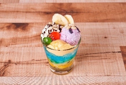 タガログ語で“混ぜこぜ”を意味するその名のとおり、たくさんのスイーツが入ったフィリピンの代表的デザートです。ラムネ味のかき氷にパッションフルーツ、ウベ(紫いも)アイスなどをトッピングした夏にぴったりのデザートです。