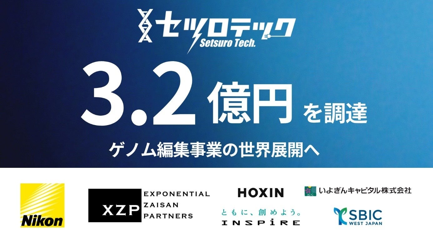株式会社セツロテック(本社:徳島県徳島市、代表取締役:竹澤慎一郎、以下「セツロテック」)は、シリーズA5ラウンドにおいて、Nikon-SBI Innovation Fund Ⅱ、EXPONENTIAL ZAISAN PARTNERS、INSPiRE Mutualistic Symbiosis Fund 1、大阪中小企業投資育成株式会社、いよぎんキャピタル株式会社、HOXIN株式会社を引受先とする第三者割当増資により、総額3.2億円の資金調達を実施しました。このたび調達した資金は、研究開発の推進強化、採用・組織体制の強化を行い、「ゲノム編集事業の世界展開」を目指します。