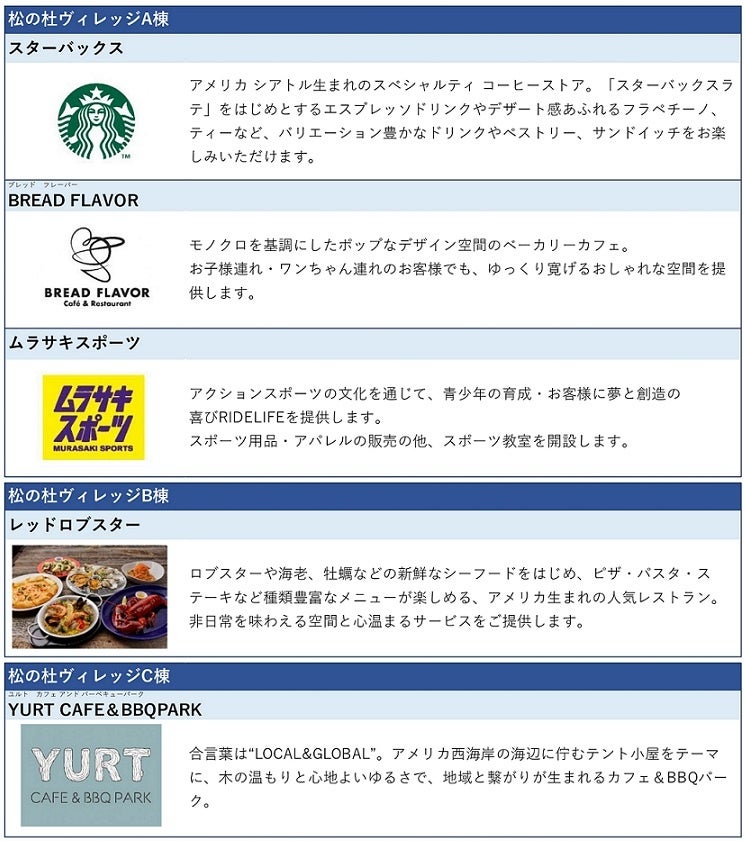 にぎわい施設エリア「松の杜ヴィレッジ」入居店舗全5店舗 オープン