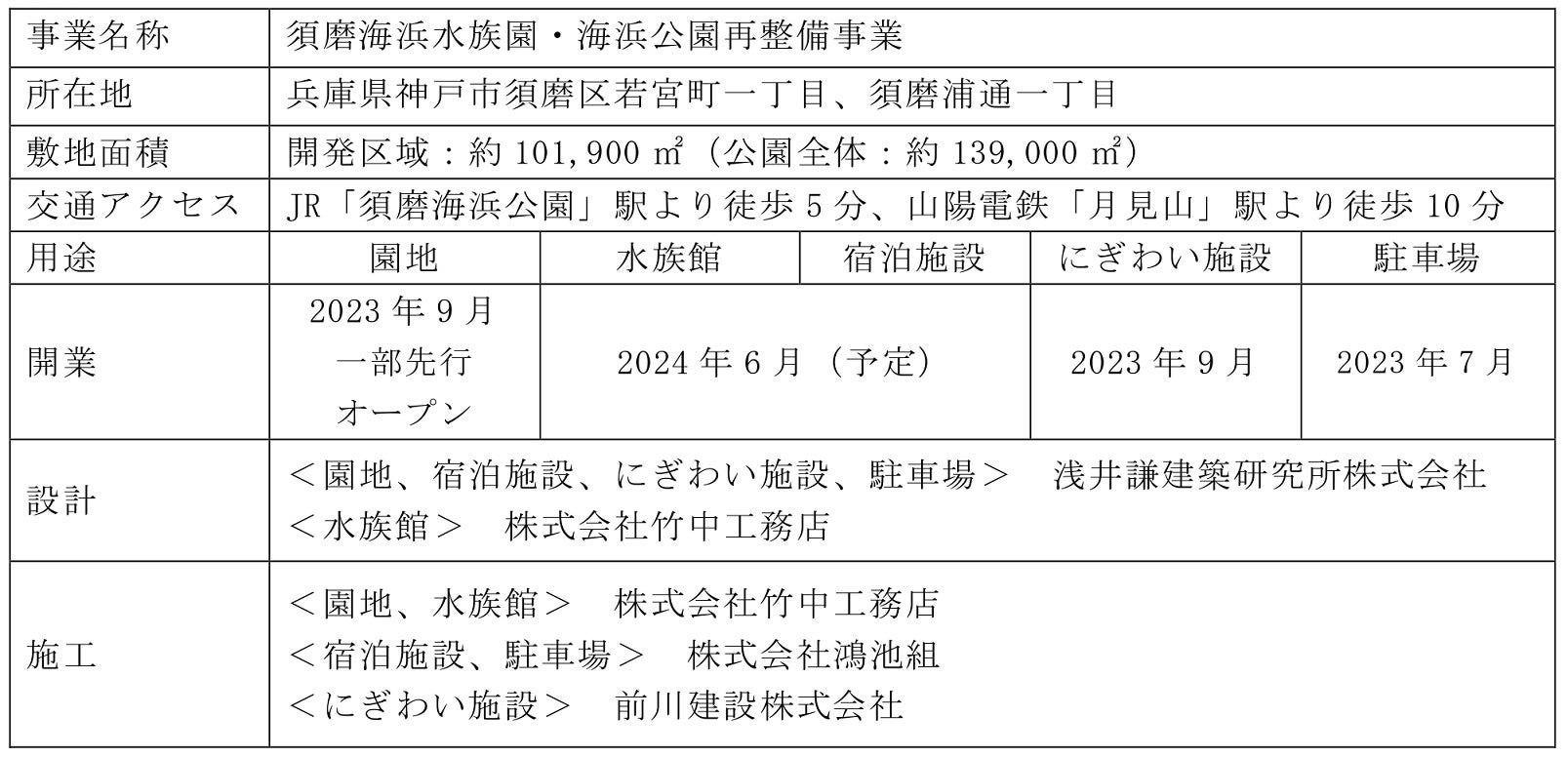 「須磨海浜水族園・海浜公園再整備事業」 ●須磨海浜公園 一部園地先行オープン ●公園内にぎわい施設テナントオープン