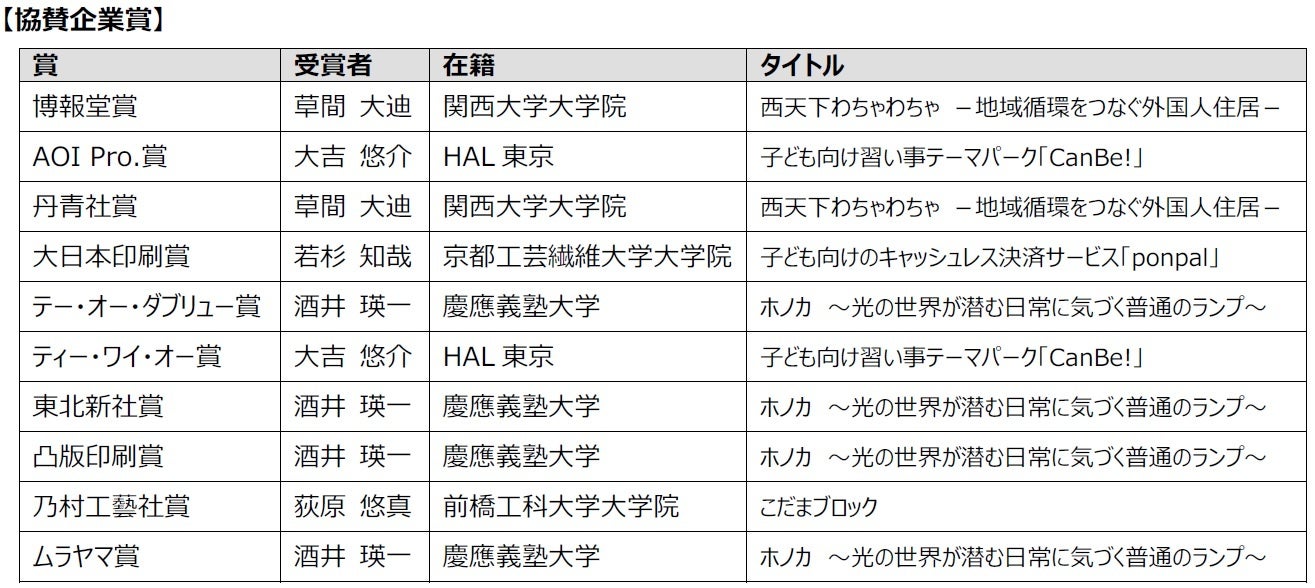 また、今回もJIDF協賛各社による協賛企業賞が設けられ、各社の独自選考により受賞者を選出しました。
