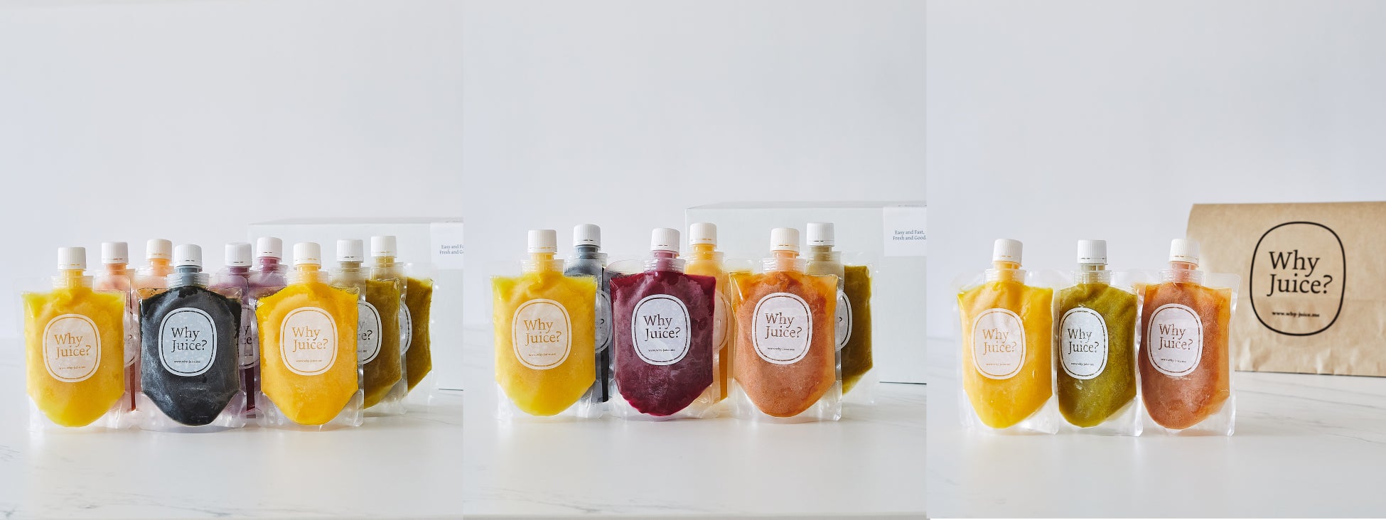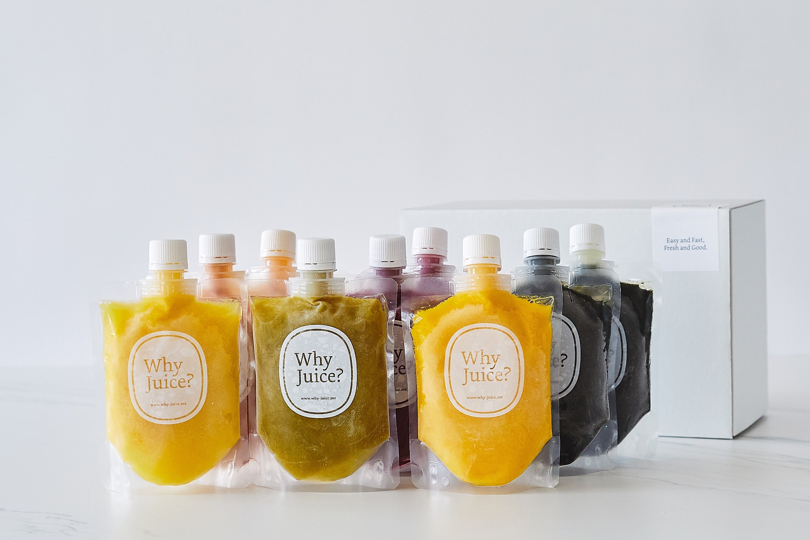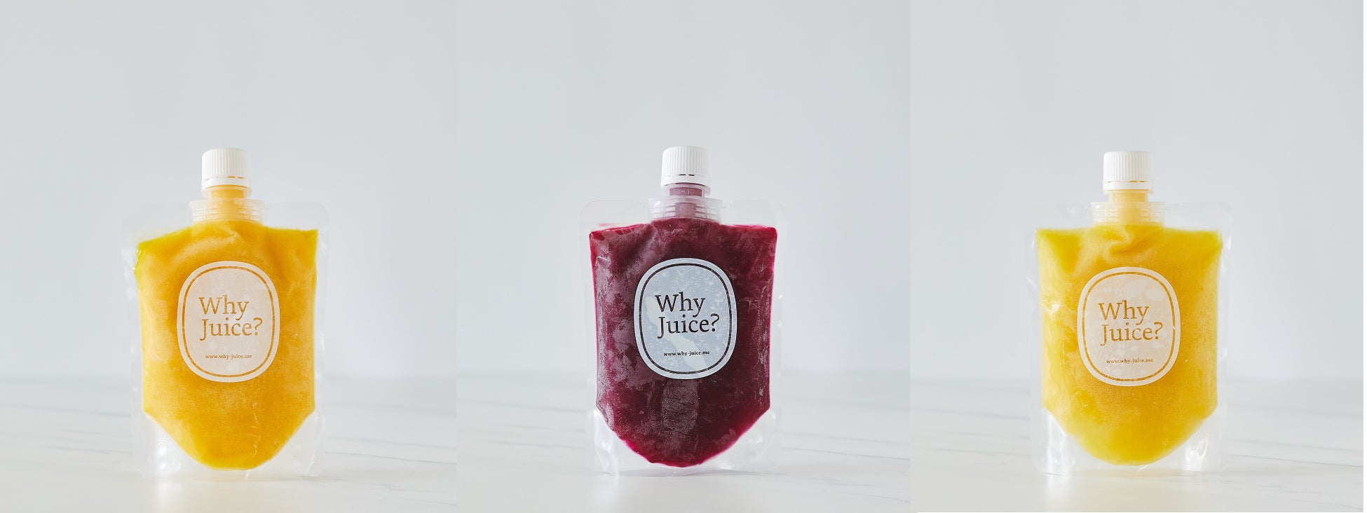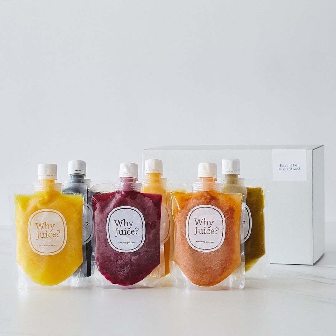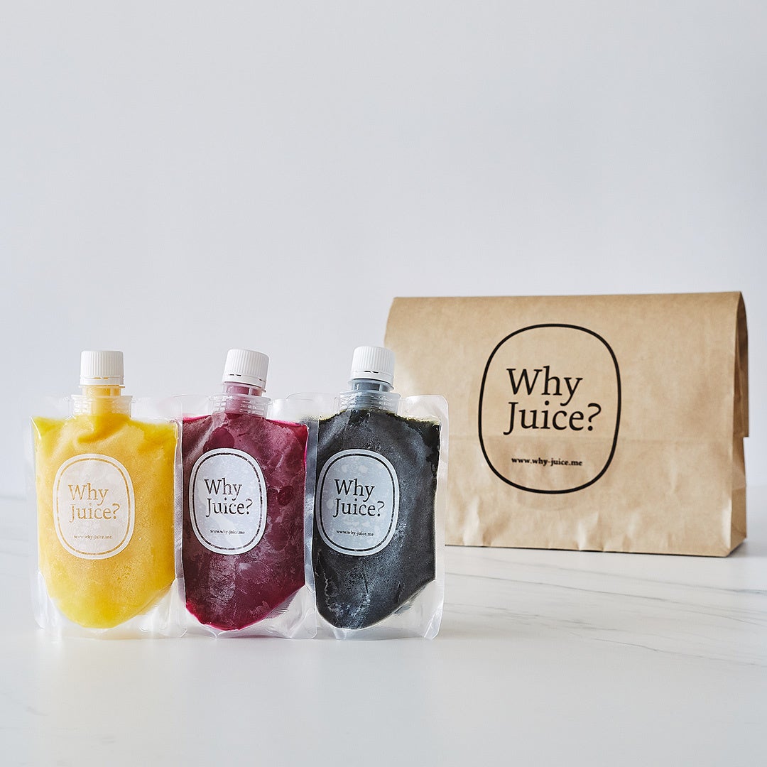 中身が見える安心安全なコールドプレスジュース専門店「Why Juice?」のコールドプレスジュースを、いつでもどこでも飲みたい時に。全国発送可能な『冷凍コールドプレスジュース』の販売をスタート!