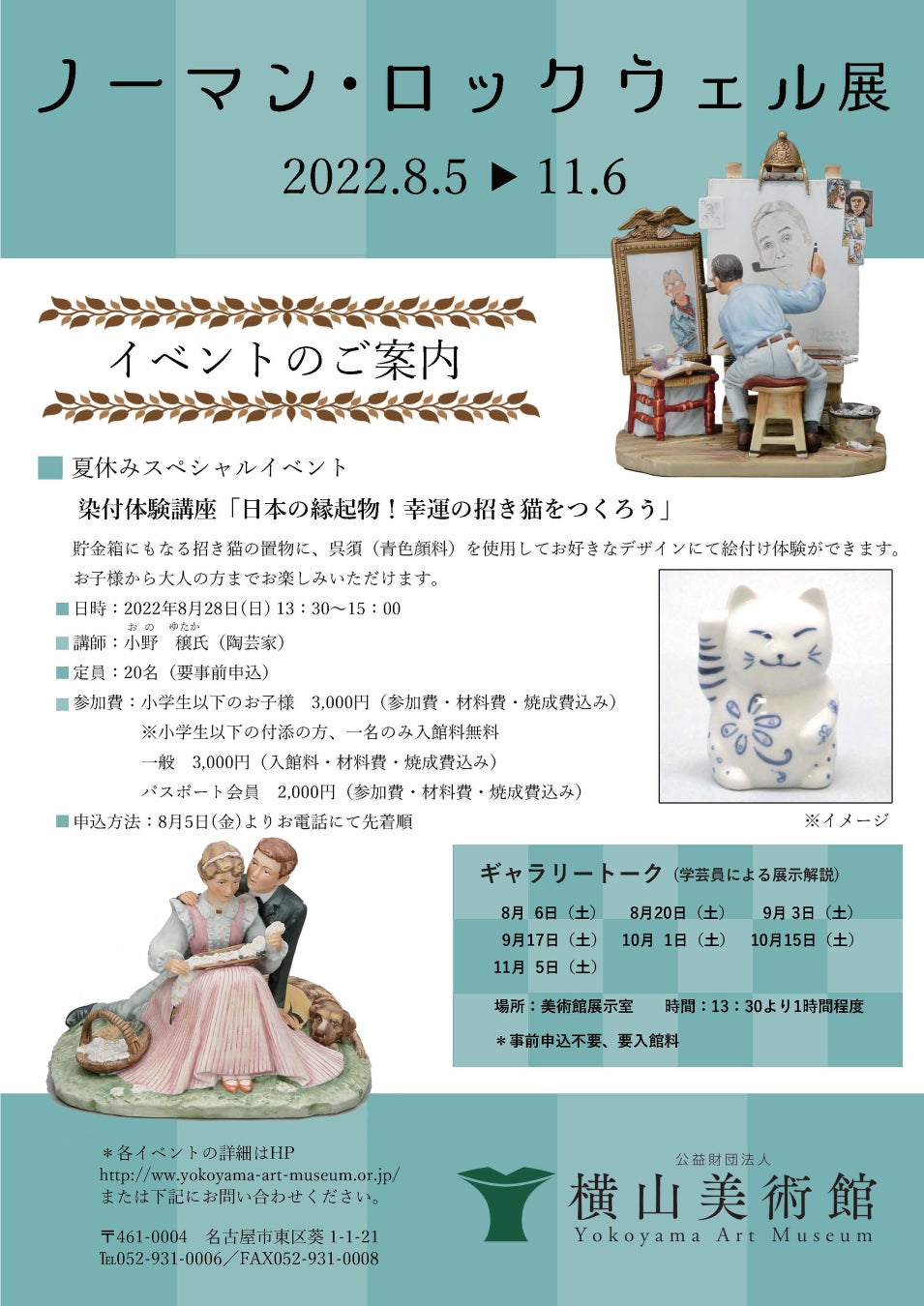 本企画展では、ノーマン・ロックウェルのノベルティを通して、瀬戸の製陶技術の素晴らしさ、そしてハートウォーミングなアメリカンライフをお楽しみいただけます。