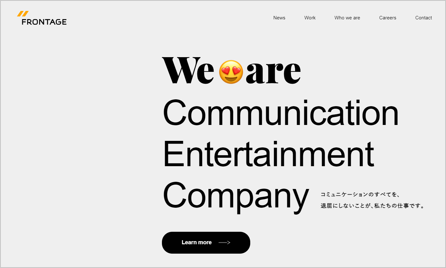 今回のリニューアルでは、フロンテッジが「コミュニケーション エンタテインメント カンパニー」として提供できることをわかりやすくお伝えするべく、デザイン・構成・コンテンツを全面的に見直し、リニューアルいたしました。