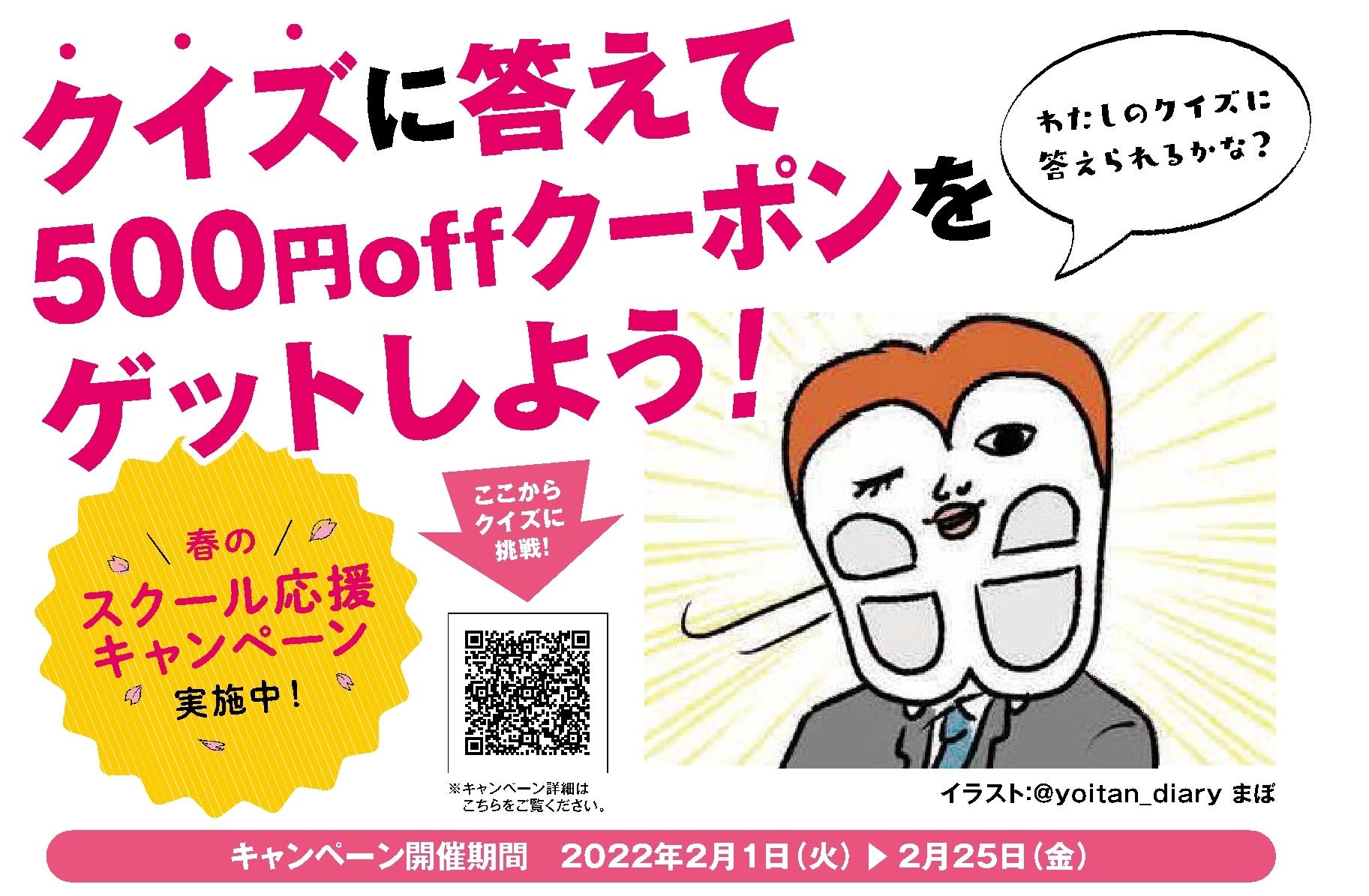 春のスクール応援キャンペーン実施中!ウワバキ係長からのクイズに答えて500円offクーポンをゲットしよう!!