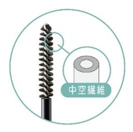 ブラシ1本1本が中空(ストロー形状)の特殊繊維を採用。しなりが良いため、まつ毛に沿わせやすく、根本から持ち上げ、簡単にダマ無しセパレートまつ毛が完成。