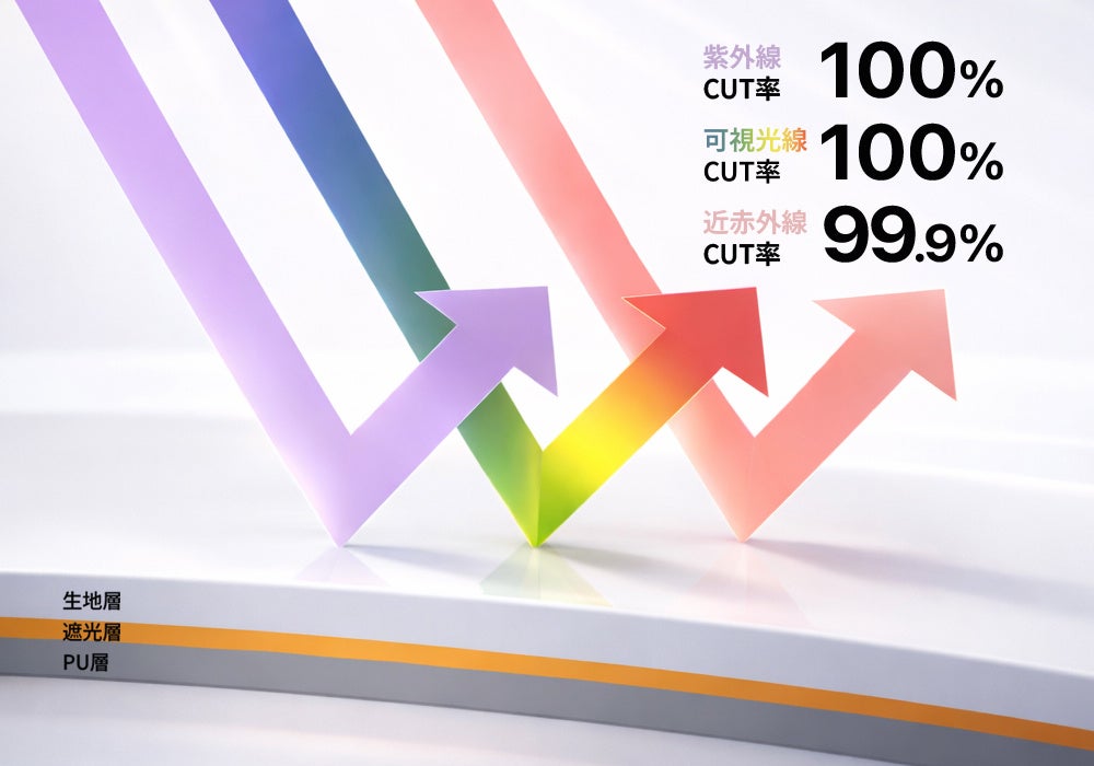 ・UVカット率100% / 遮光率100% / 可視光線カット率100%