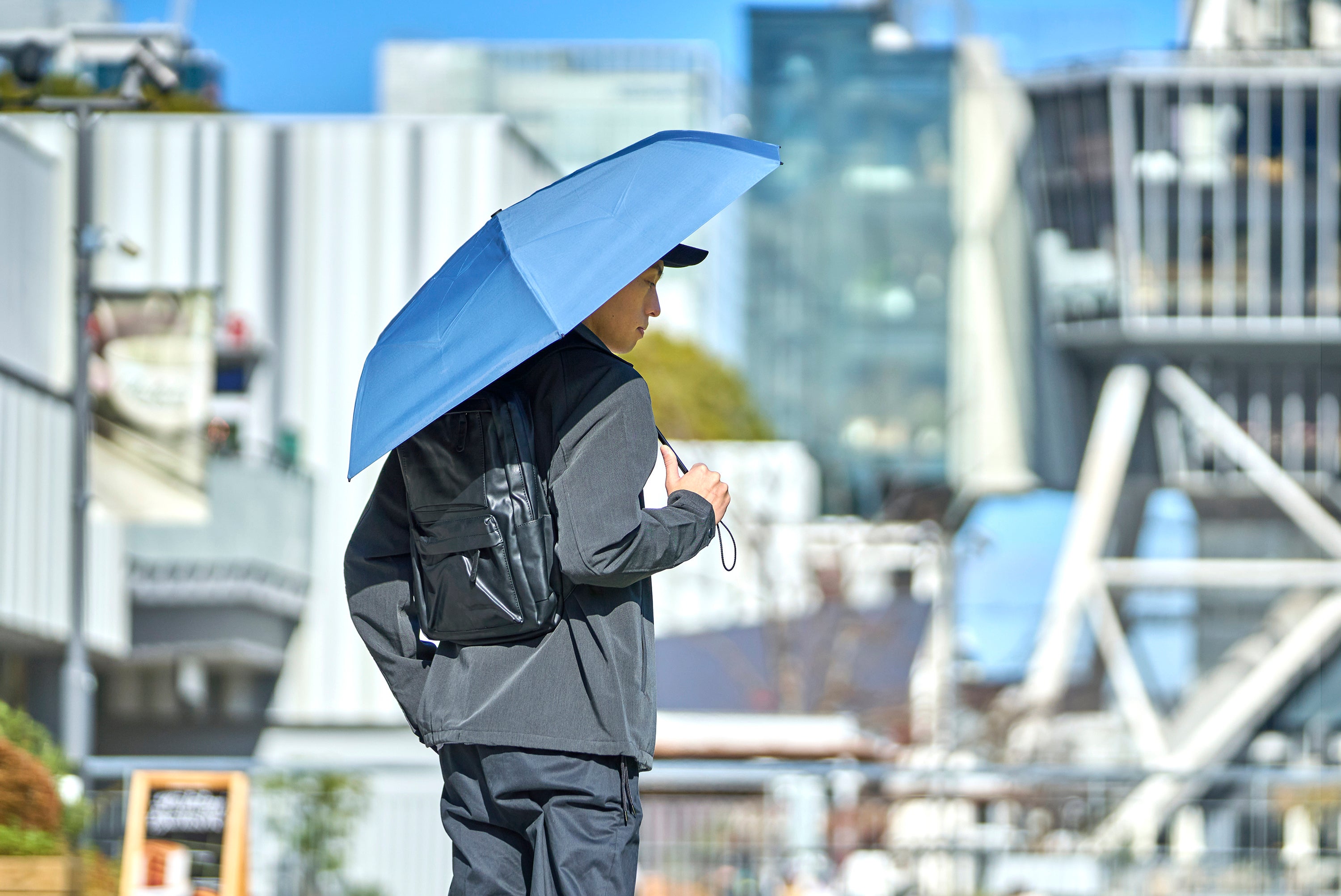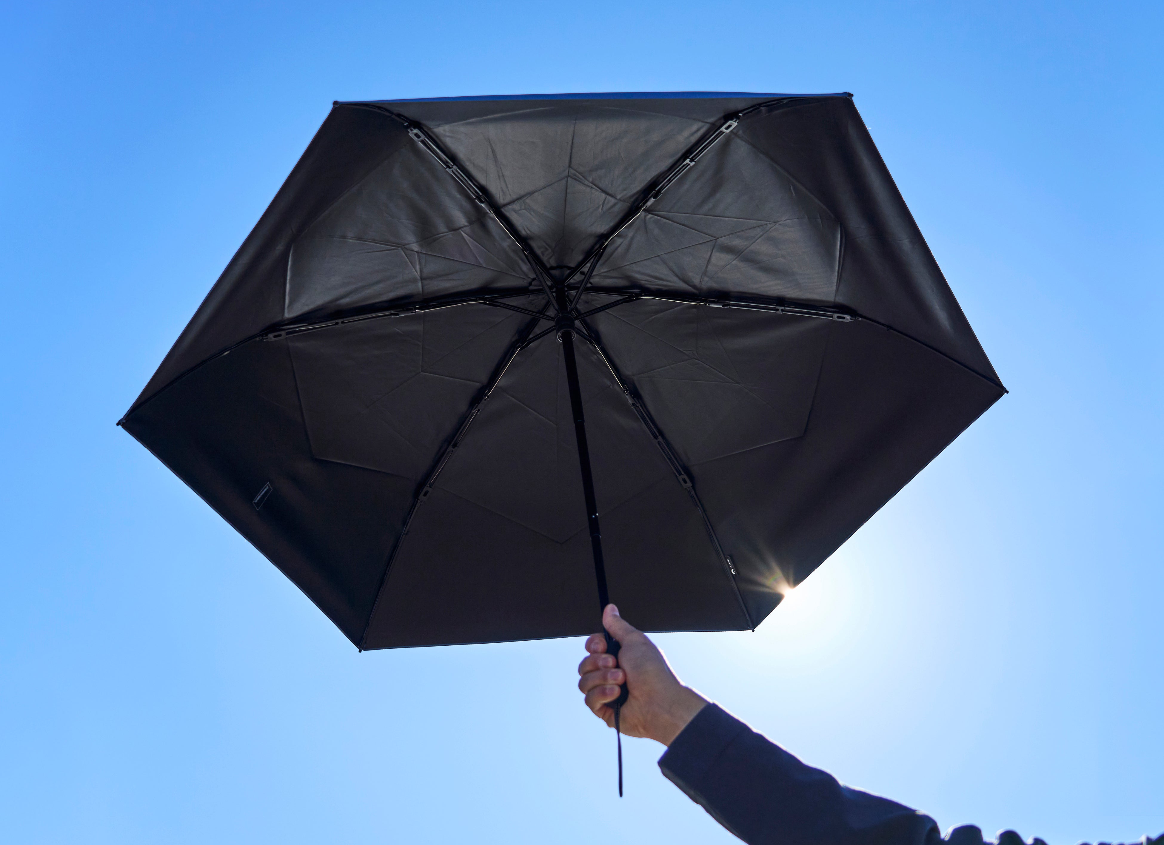 たたむ手間・強風への不安・暑さと紫外線・携行時の重さ。都市で働くビジネスパーソンが傘に感じてきた4つの課題を、1本で解決することを目指して開発されました。