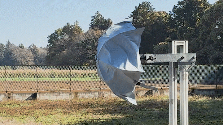 風速30m/s(108km/h)は、走行中の特急列車が受ける風、あるいは看板が落下するほどの強風に相当します。この試験で破損なしを記録したのが、グラスファイバーを親骨に2本束ねた「ダブル・グラスファイバー骨」と12角形断面のアルミニウムシャフトによるフレーム構造です(※一定方向からの風に対する試験値)。