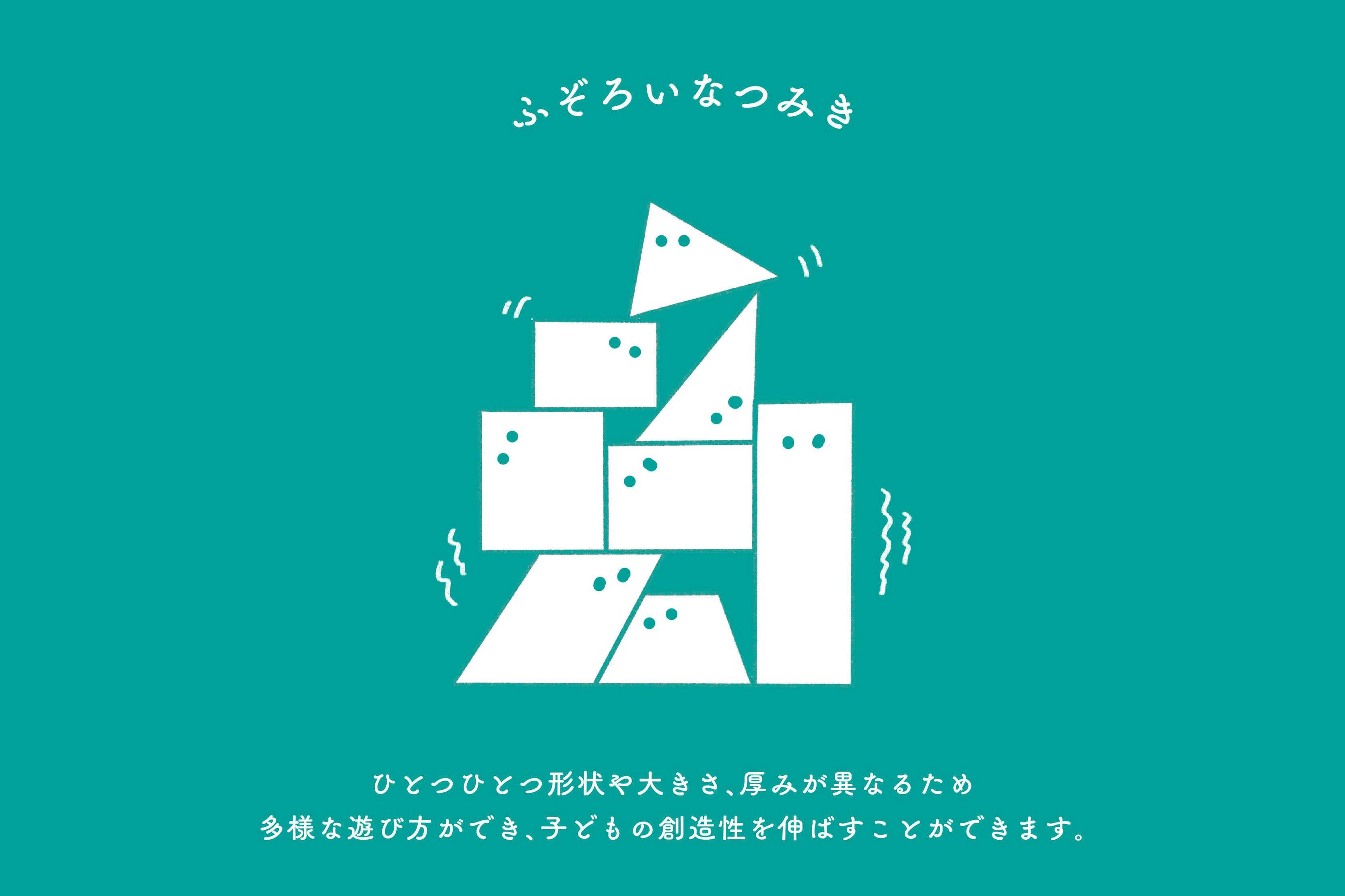 大阪の工務店が、大量の余剰材を捨てることなく有効活用できないかという想いから企画。子どもが遊ぶことで「天然資源を大切にしよう」というメッセージが伝わりSDGs教育にも繋がる、ふぞろいな形の積み木です。