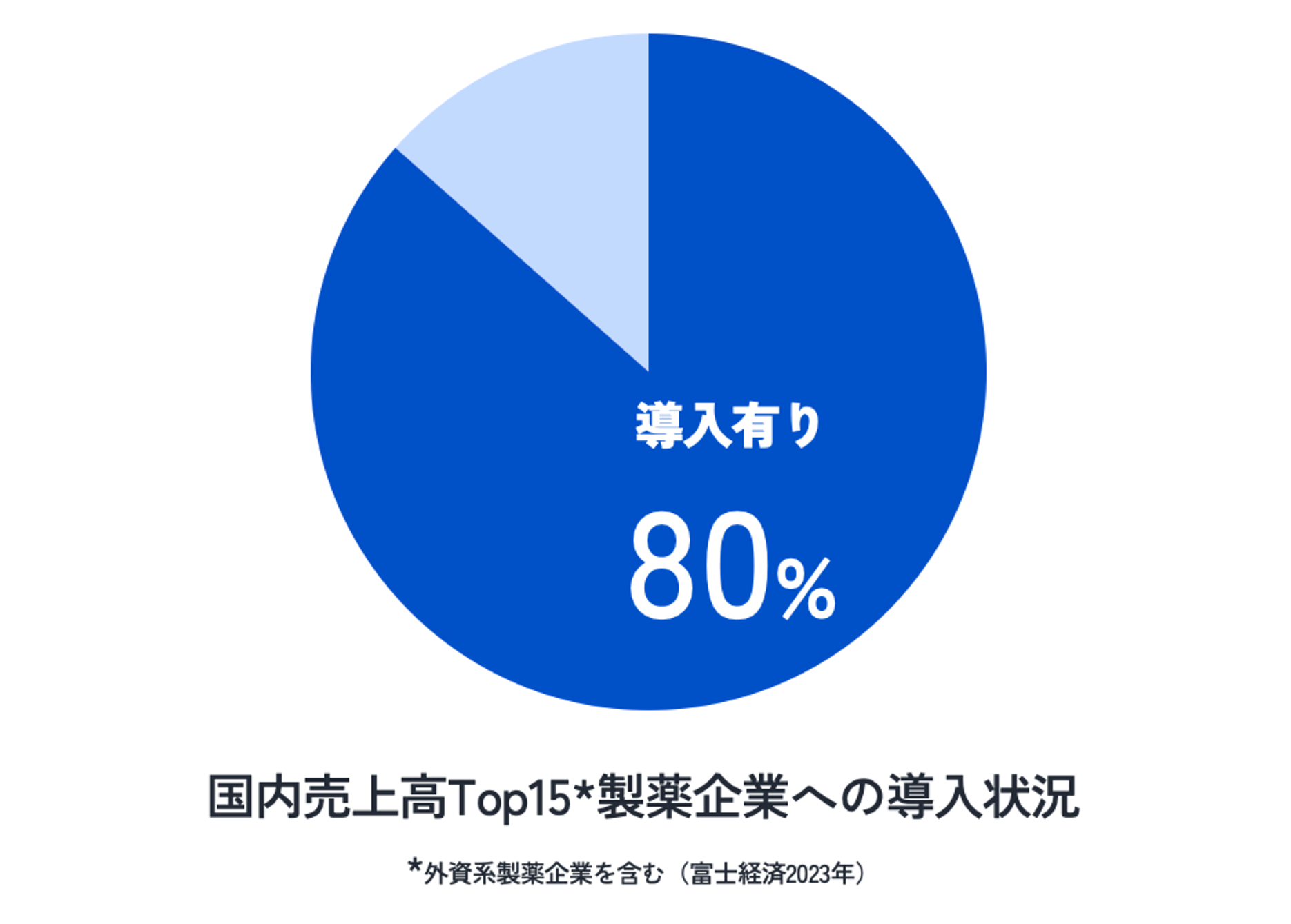 同サービスは、国内売上高Top15の製薬企業のうち、80%以上の企業様に既にご導入いただいております。