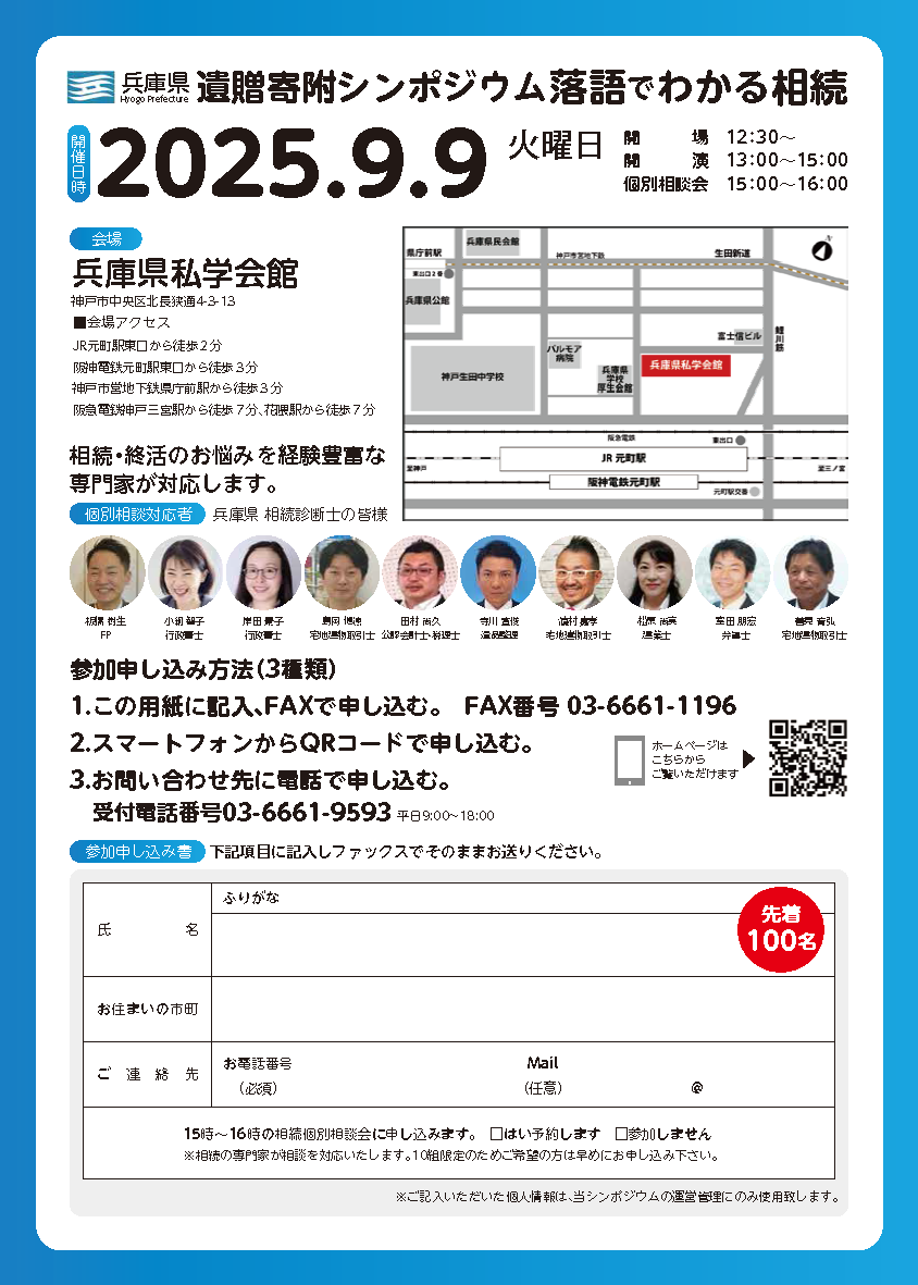 講演後には兵庫県の相続診断士による相続個別相談会も実施致します。