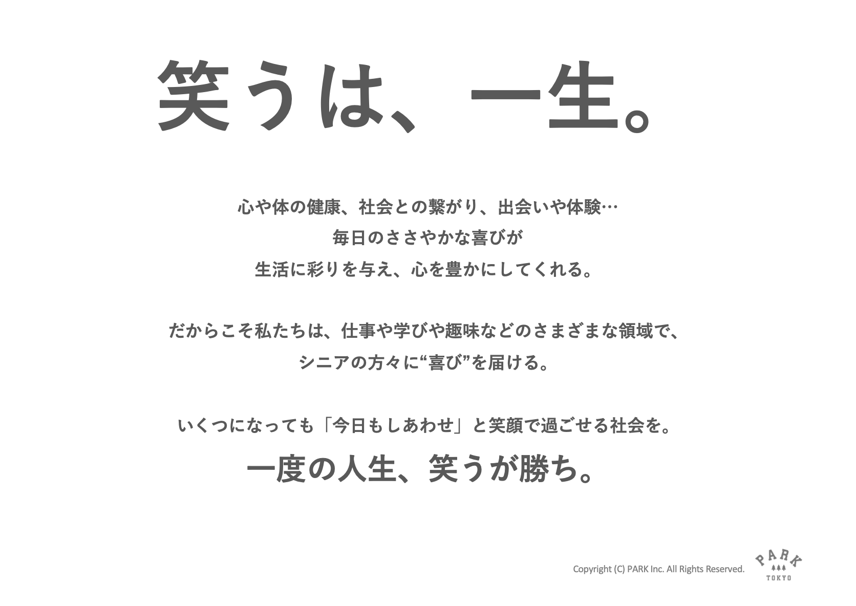 成長と共に進化を遂げ続け、一人でも多くのシニアに喜びを届ける企業になるという決意を新たに、今後も邁進して参ります。