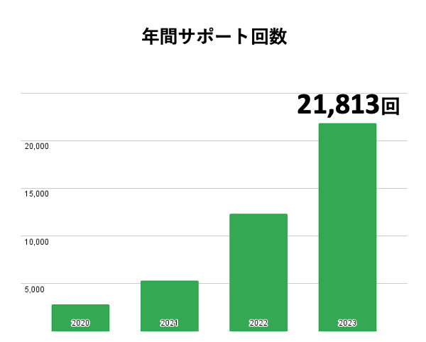 家事代行やベビーシッター市場の成長とともに、「東京かあさん」も立ち上げから5年で大きく発展しました。特にコロナ禍を経て、働くことに意欲的なシニアの「お母さん」の登録者数、サポートを求めている顧客数は急増しており、サポート回数も年々増加傾向です。