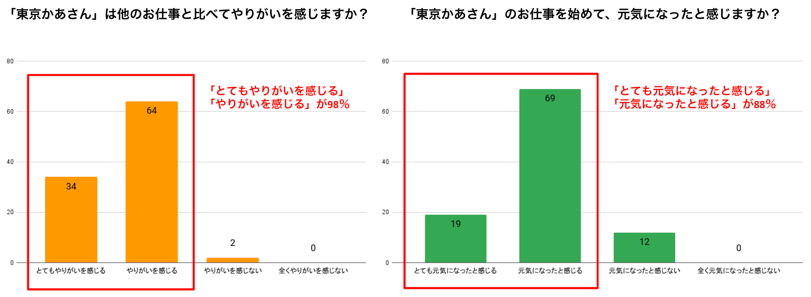 【参考資料より抜粋】「東京かあさん」を通じて98%がやりがいを、88%が元気になったと実感している