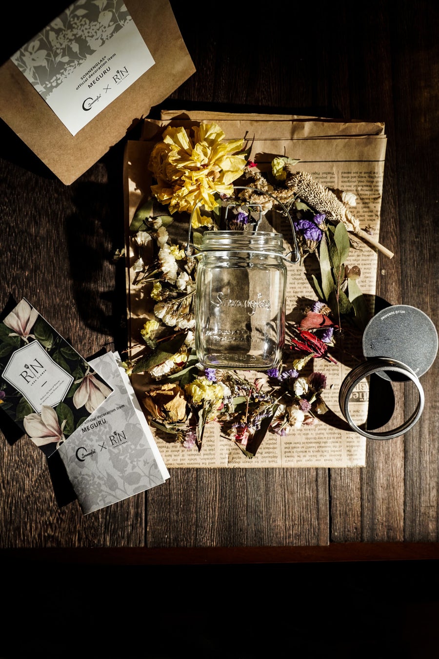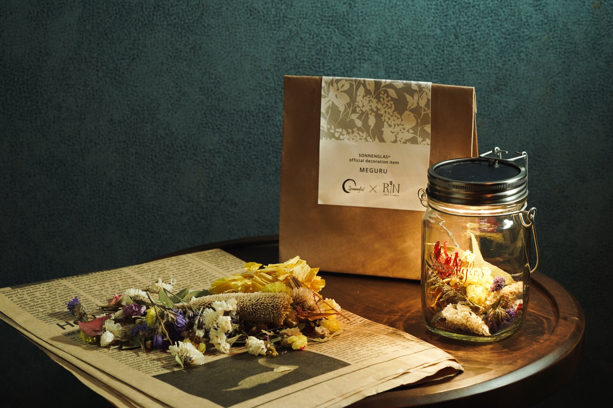 廃棄される予定の花たちに命を吹き込む「RIN」と、南アフリカで生産され雇用を生み出すフェアトレード商品「ソネングラス®︎」のコラボレーションによって生まれた“MEGURU”は、循環型のサステナブルな社会を目指します。「RIN」の華やかで美しいロスフラワーと、「ソネングラス®︎」の優しい灯りを楽しみながら、気軽にサステナビリティをライフスタイルに取り入れてみるのはいかがでしょうか?
