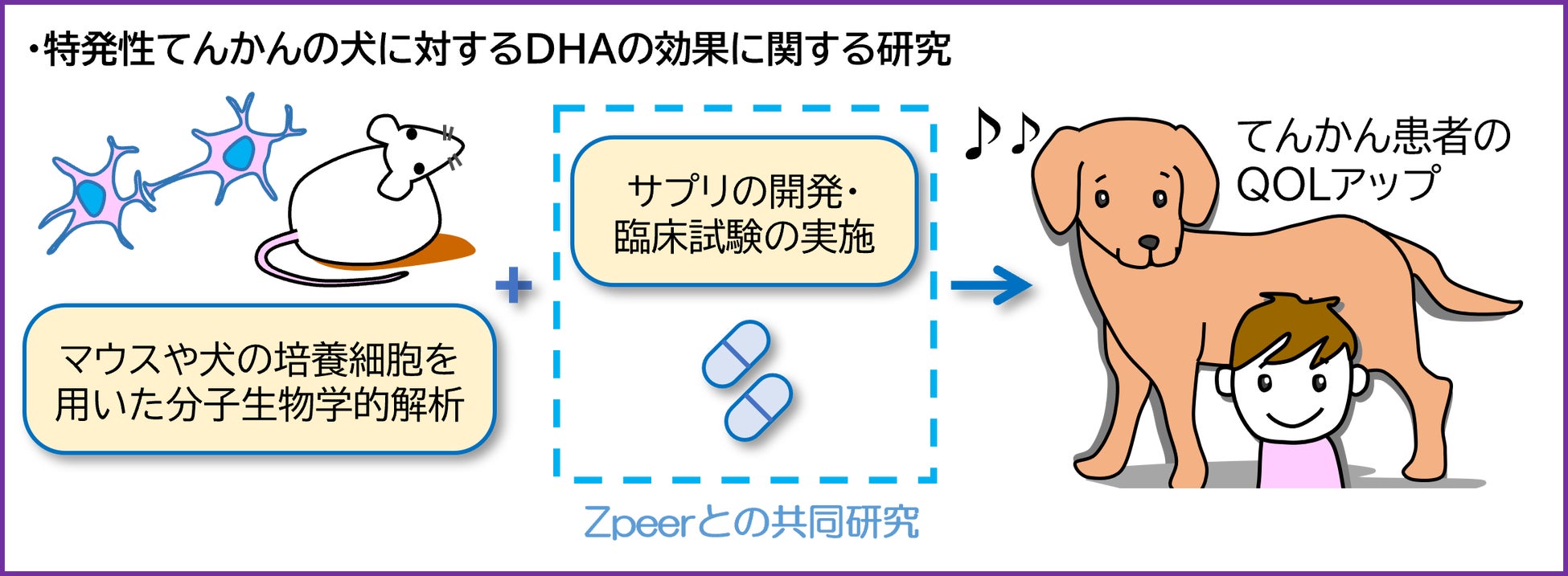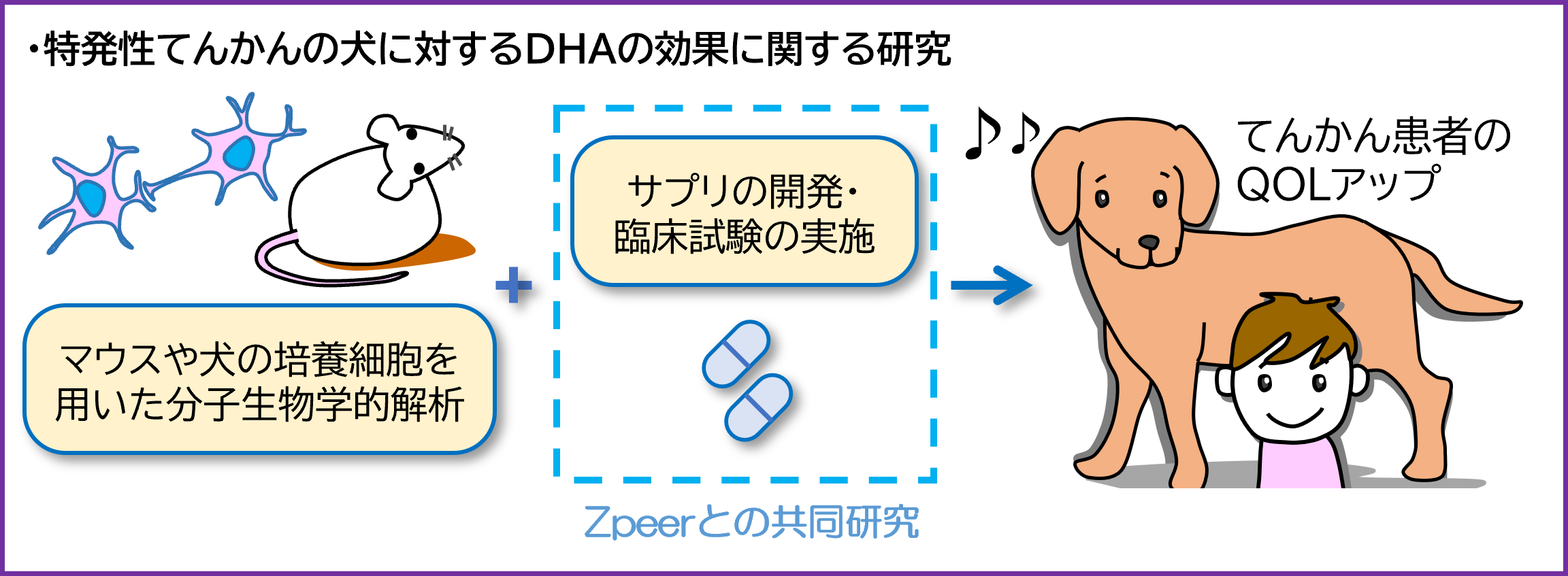 Zpeerは、東京大学大学院農学生命科学研究科 獣医臨床病理学研究室(米澤 智洋 准教授)と共同研究を開始いたしました。本研究では、特発性てんかんの犬における発作頻度とドコサヘキサエン酸(DHA)摂取の関係性を探索することを目的としており、実際に症例を用いた臨床試験を実施する予定です。