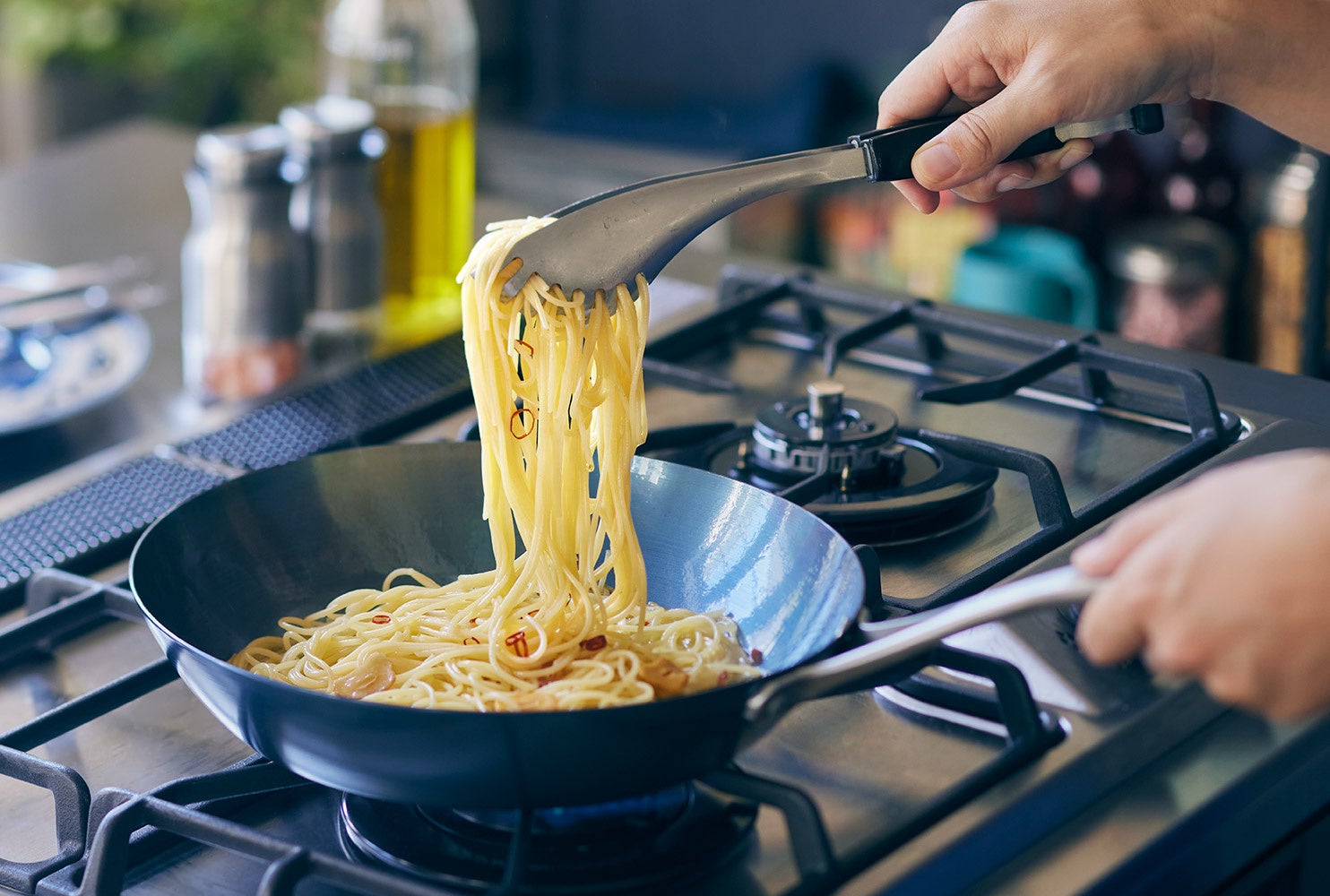 料理に合わせて使い分けられる大小2サイズのフライパンと、炒め物に最適な深型のウォック(中華鍋)の3アイテムをご用意いたしました。