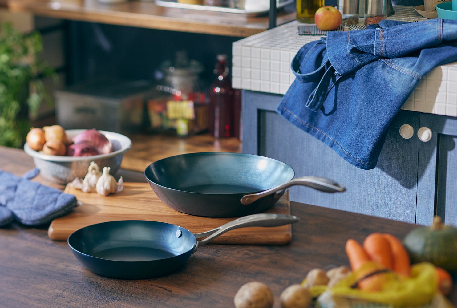 DENIIMのスローガンである「Casual Kitchen Style」には、ジーンズのように普段着感覚で、日々変化していく鉄フライパンの調理を楽しんでいただきたい、という想いを込めています。
