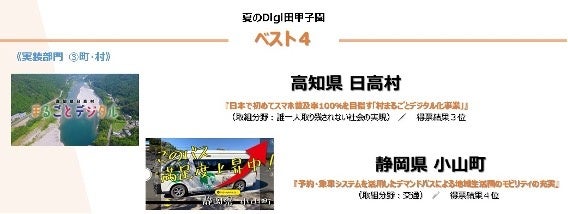 高知県日高村(所在地:高知県日高村、村長:戸梶眞幸、以下「日高村))は、内閣官房主催「夏のDigi田甲子園」の全国大会に「村まるごとデジタル化事業」の取り組みをもってエントリー。7月12日〜8月15日に実施された国民投票をへて、令和4年9月2日に実装部門(町・村の部)において、ベスト4を受賞いたしましたので、お知らせします。