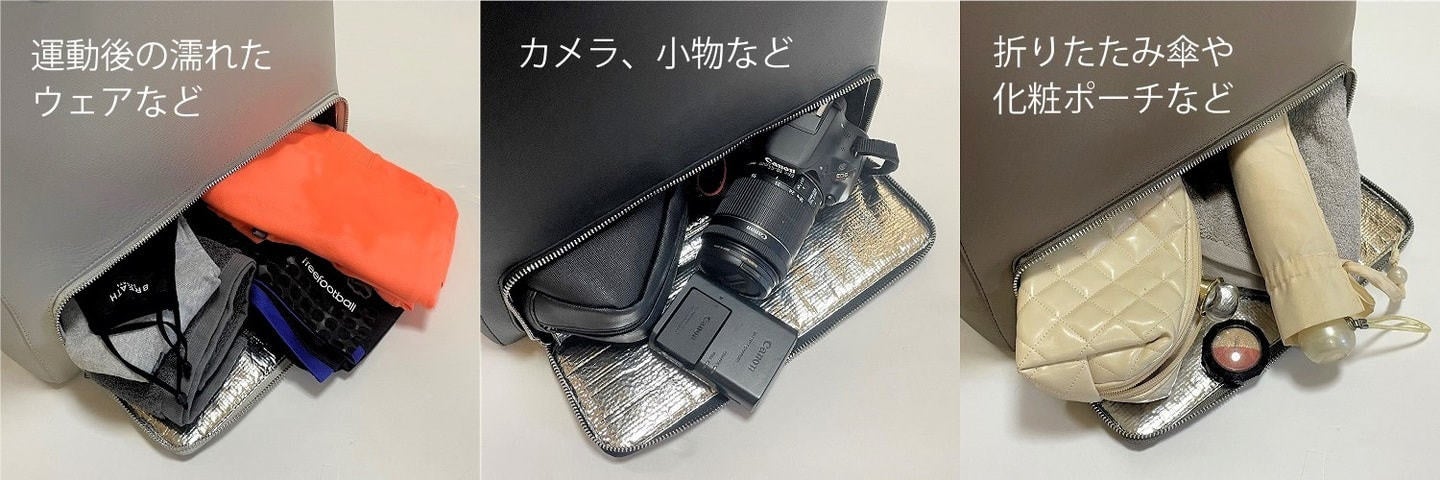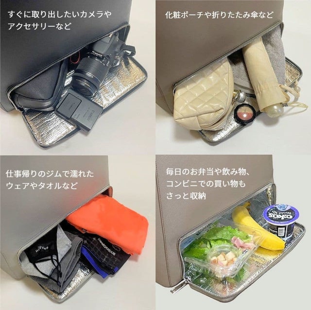 - 保冷保温スペース完備!ランチボックスなど食品もひとつのバッグに