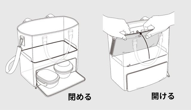 このユニークな構造により、食品を持ち運ぶ保冷保温バッグを別に持ち歩く必要はもうありません。