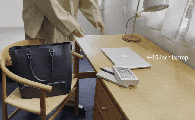 高さのあるものや大きいものを持ち運ぶときに便利ですね。15インチのノートパソコンやスケッチブックもしっかり収納できます。