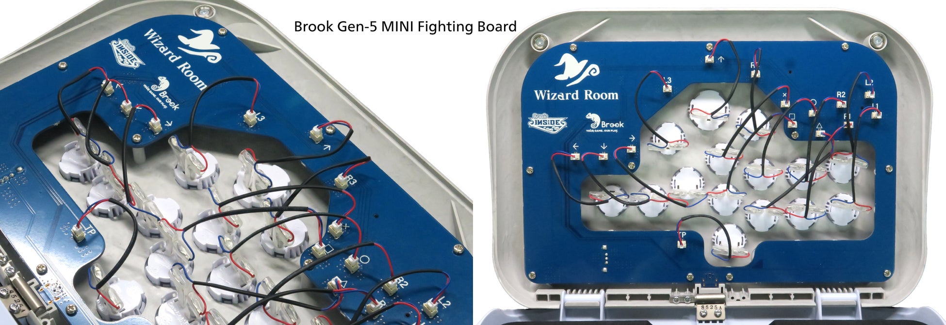 基板は「Brook Gen-5 MINI Fighting Board」を搭載。ヒロセ電機製USB2.0 Type-Cコネクタ、Panasonic製タクタイルスイッチを採用。